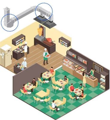 Duy trì môi trường ăn uống thoải mái đòi hỏi phải kiểm soát mùi hiệu quả trong nhà hàng. Các hệ thống chuyên dụng dùng để khử mùi khi nấu nướng phục vụ hai mục đích: loại bỏ mùi và ngăn ngừa tia lửa, từ đó đảm bảo an toàn phòng cháy chữa cháy.