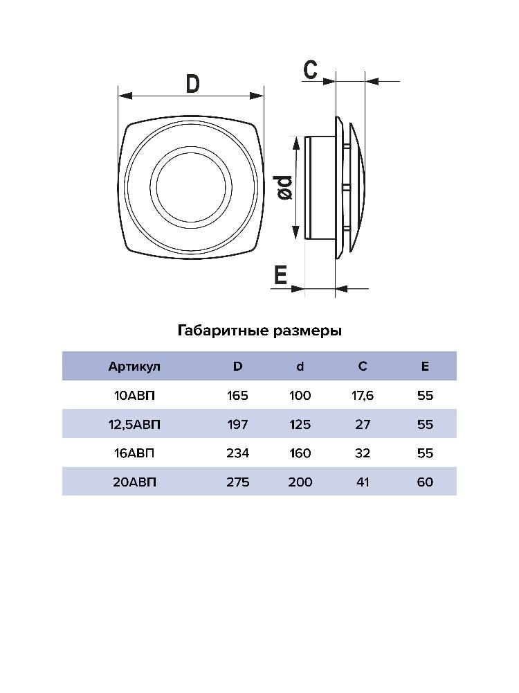 Анемостат АВП фланец D200 вытяжной регулируемый D275 пластик ERA