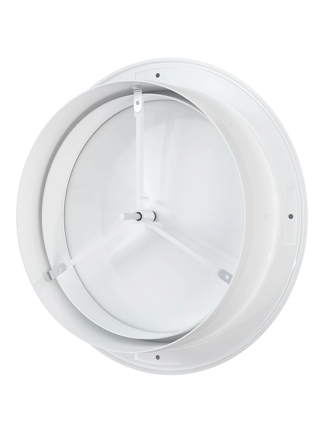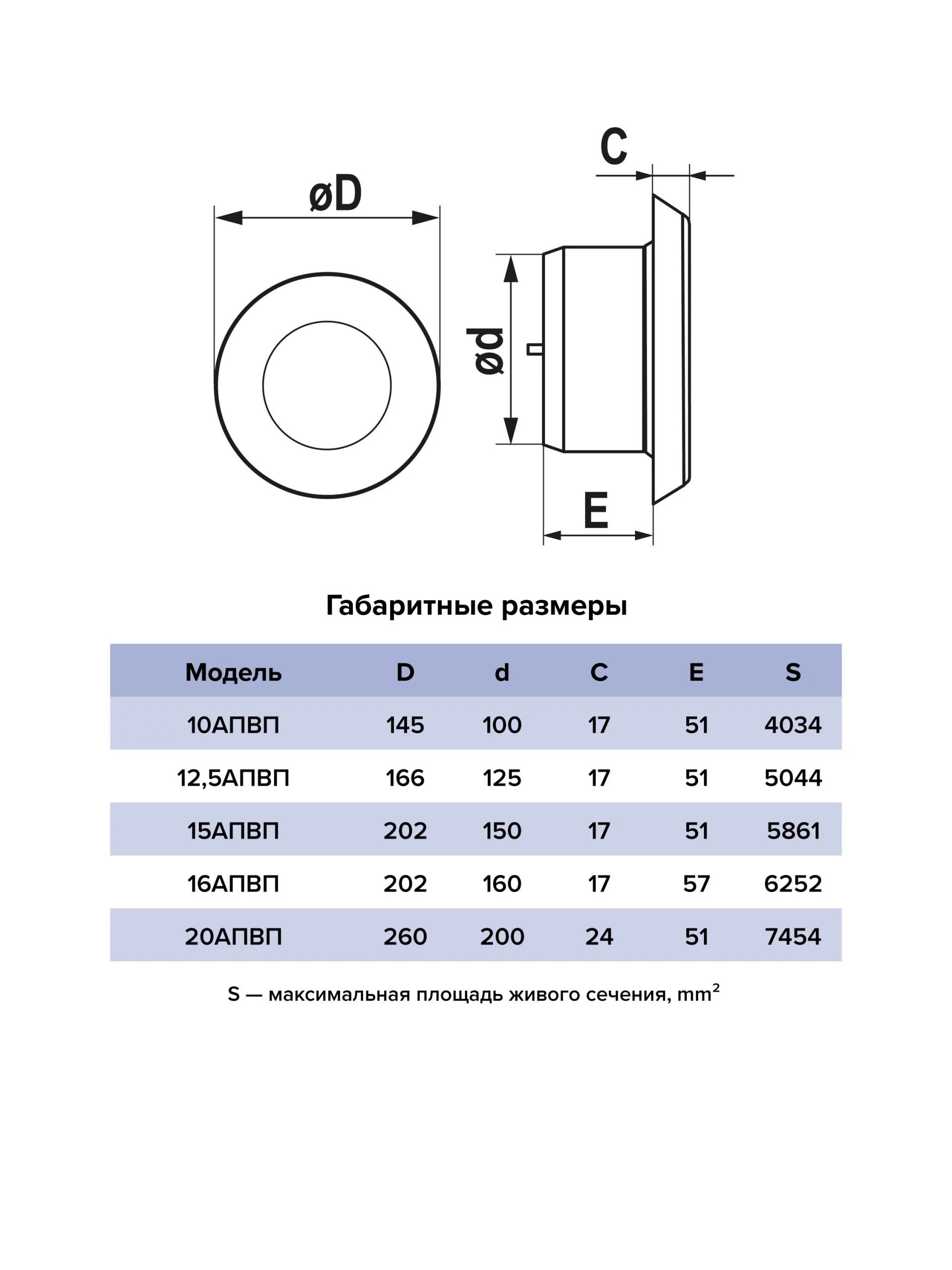 Возможна регулировка потока воздуха вращением центральной части клапана. АПВП имеет фланец для соединения с круглым воздуховодом.