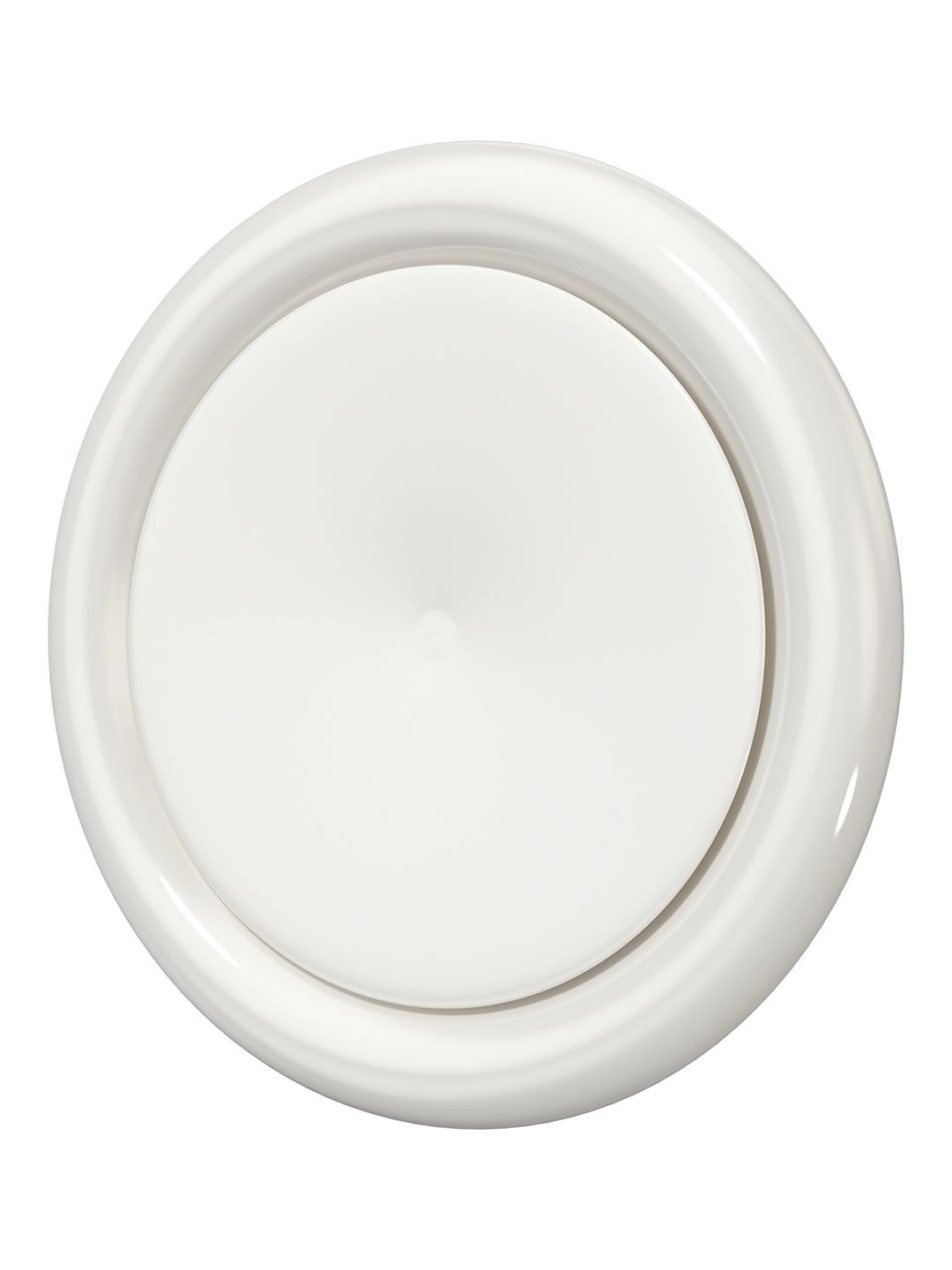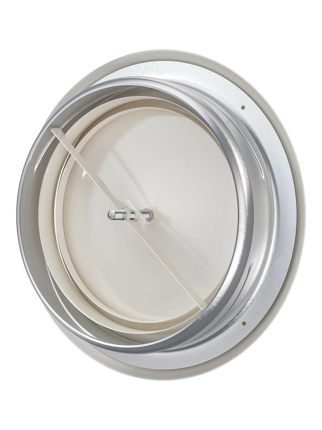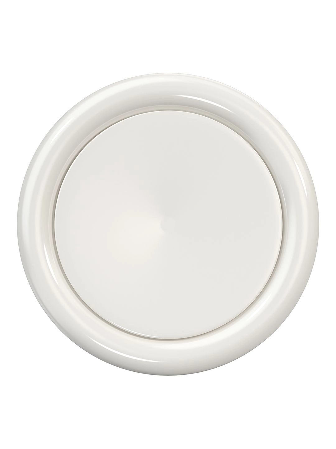 Поток воздуха регулируется вращением центральной части клапана. Монтируется в стену или подвесной потолок.