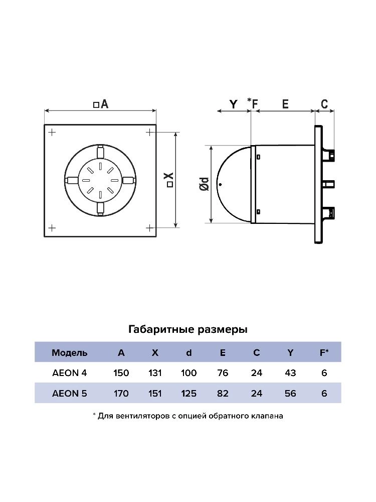 Вентилятор вытяжной AEON 4С D100 обратный клапан DICITI