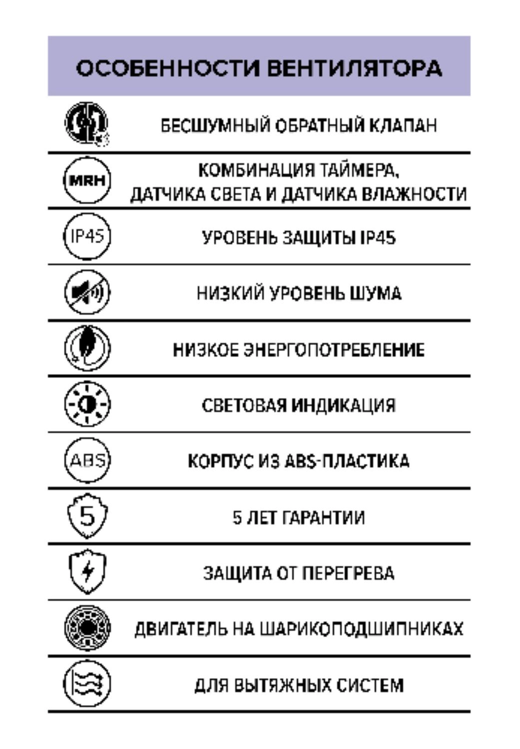 Вентилятор оборудован технологичной мультиопционной платой управления MRH с датчиком влажности, света и таймером с возможностью настройки необходимого времени работы.