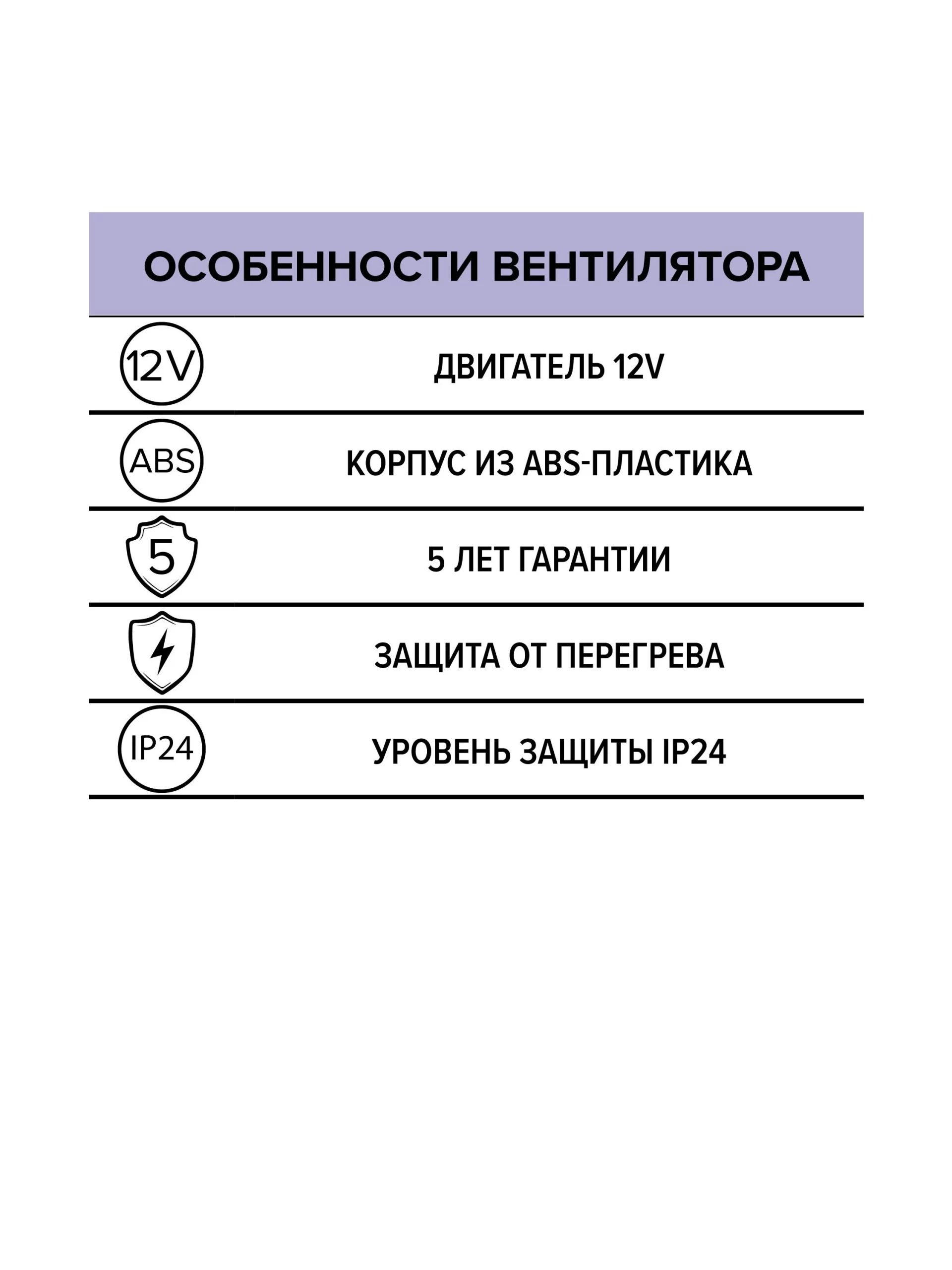 Помимо вентиляторов, работающих от сети 220 V, в серии PROFIT представлены устройства, работающие от сети 12 V переменного тока. Такая сеть чаще всего встречается в помещениях с высокой сыростью: в подвалах, гаражах и т.д.