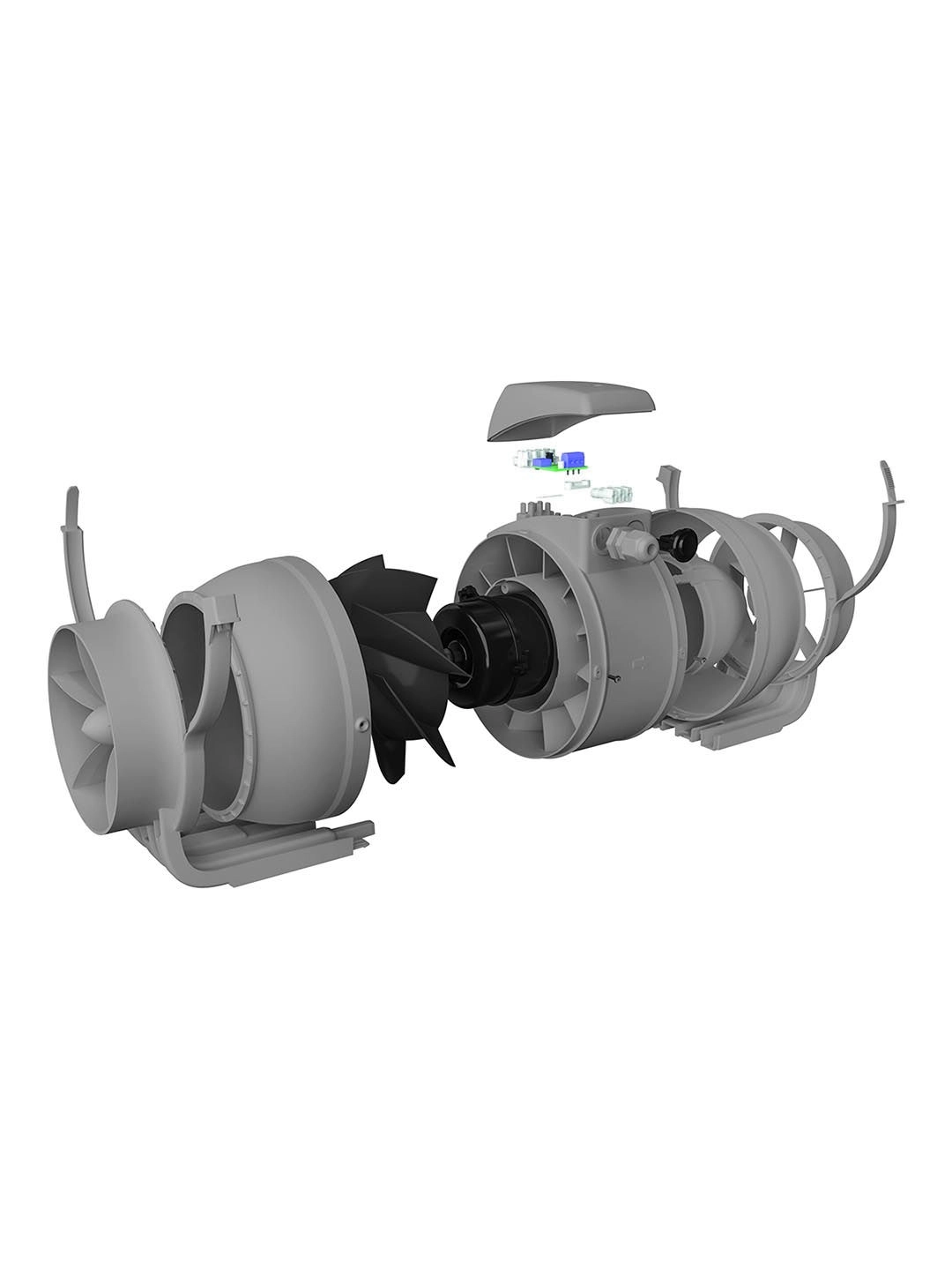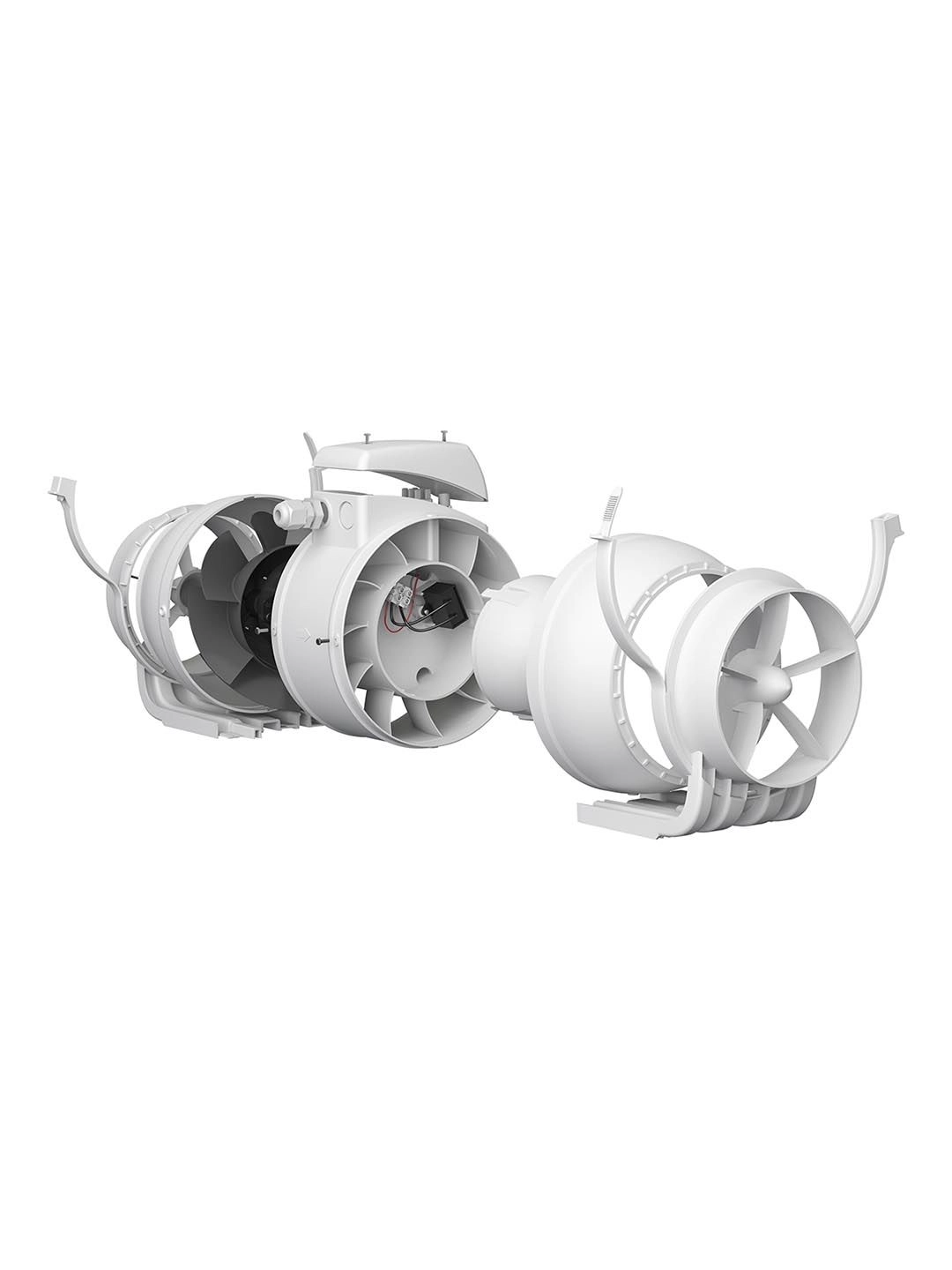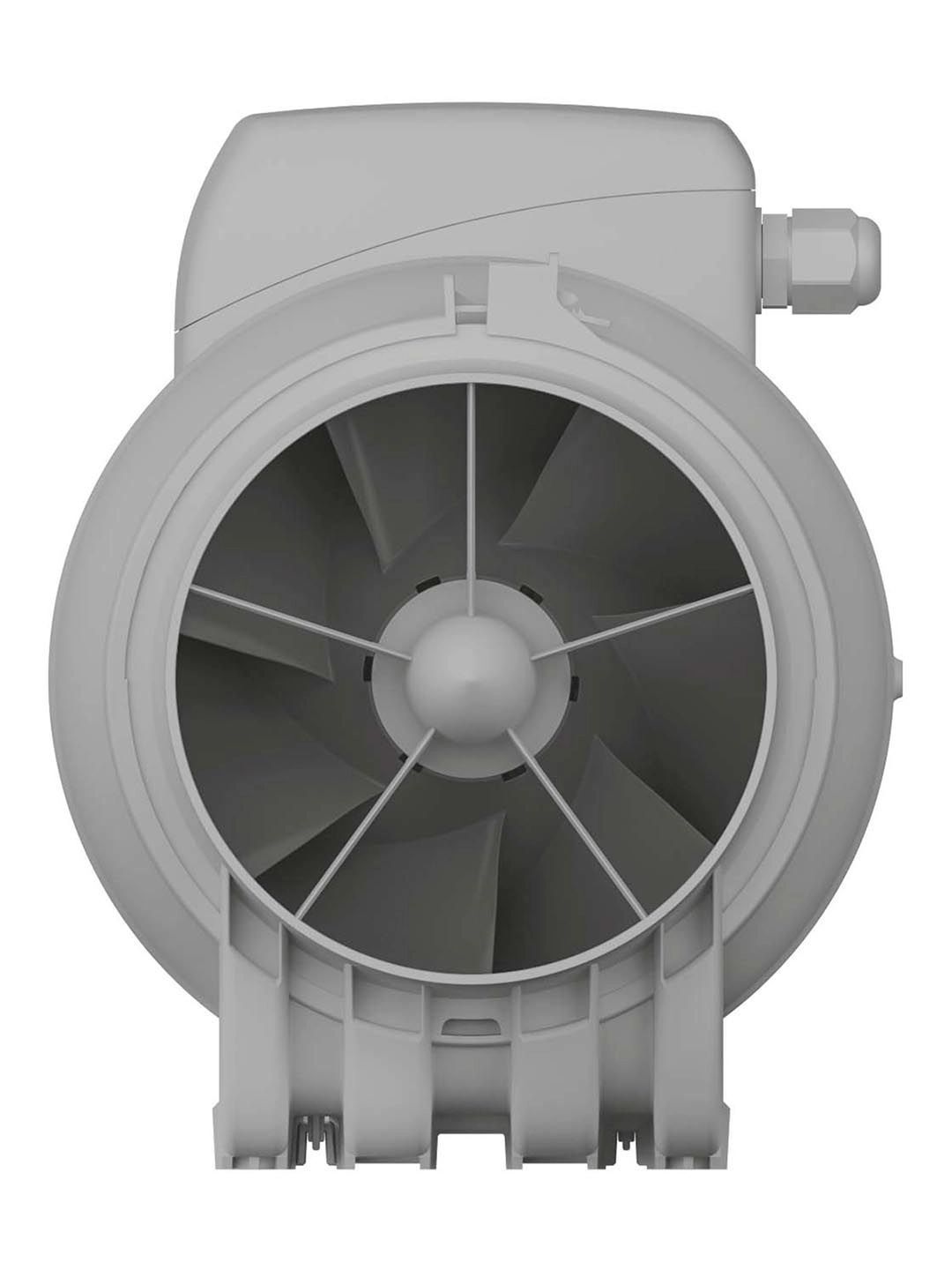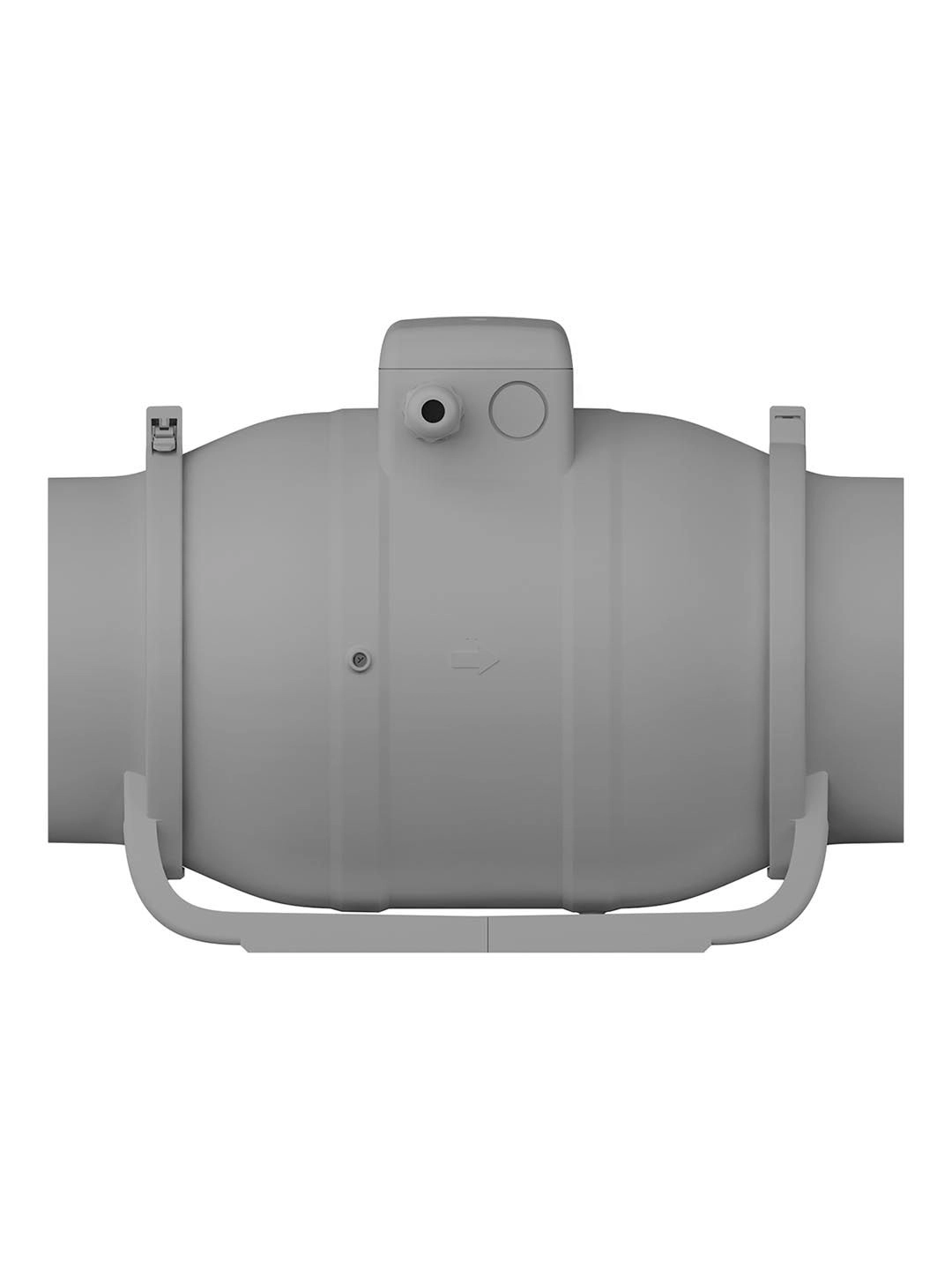 Канальный осевой вентилятор смешанного типа в корпусе из пластика. Предназначен для приточно-вытяжных систем вентиляции промышленных, общественных и жилых зданий. Имеет разборную конструкцию, что упрощает обслуживание: съемный центральный блок с двигателем, крыльчаткой и клеммной коробкой крепится к боковым патрубкам пластиковыми хомутами.