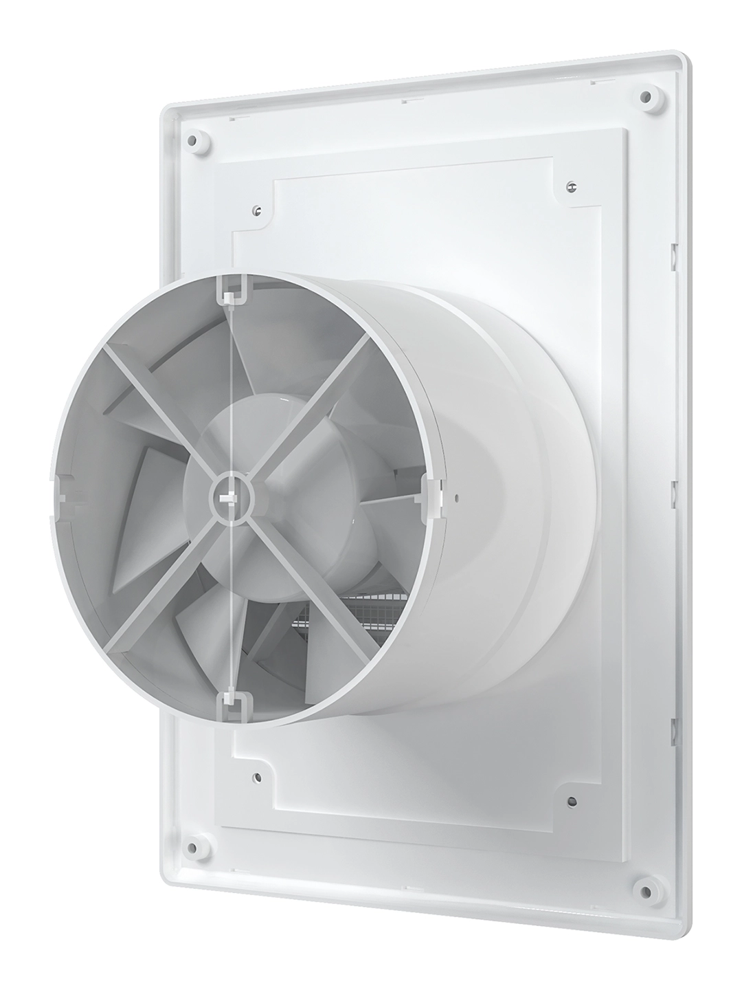 Наклонные жалюзи скрывают от глаз крыльчатку вентилятора.