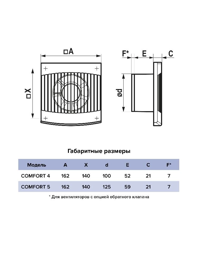 Вентилятор отвечает самым строгим стандартам качества и безопасности. Двигатель на подшипниках скольжения гарантирует вытяжку влажного и загрязненного воздуха. А защита от перегрева автоматически выключит вентилятор при температуре двигателя +115°С – +125°С.