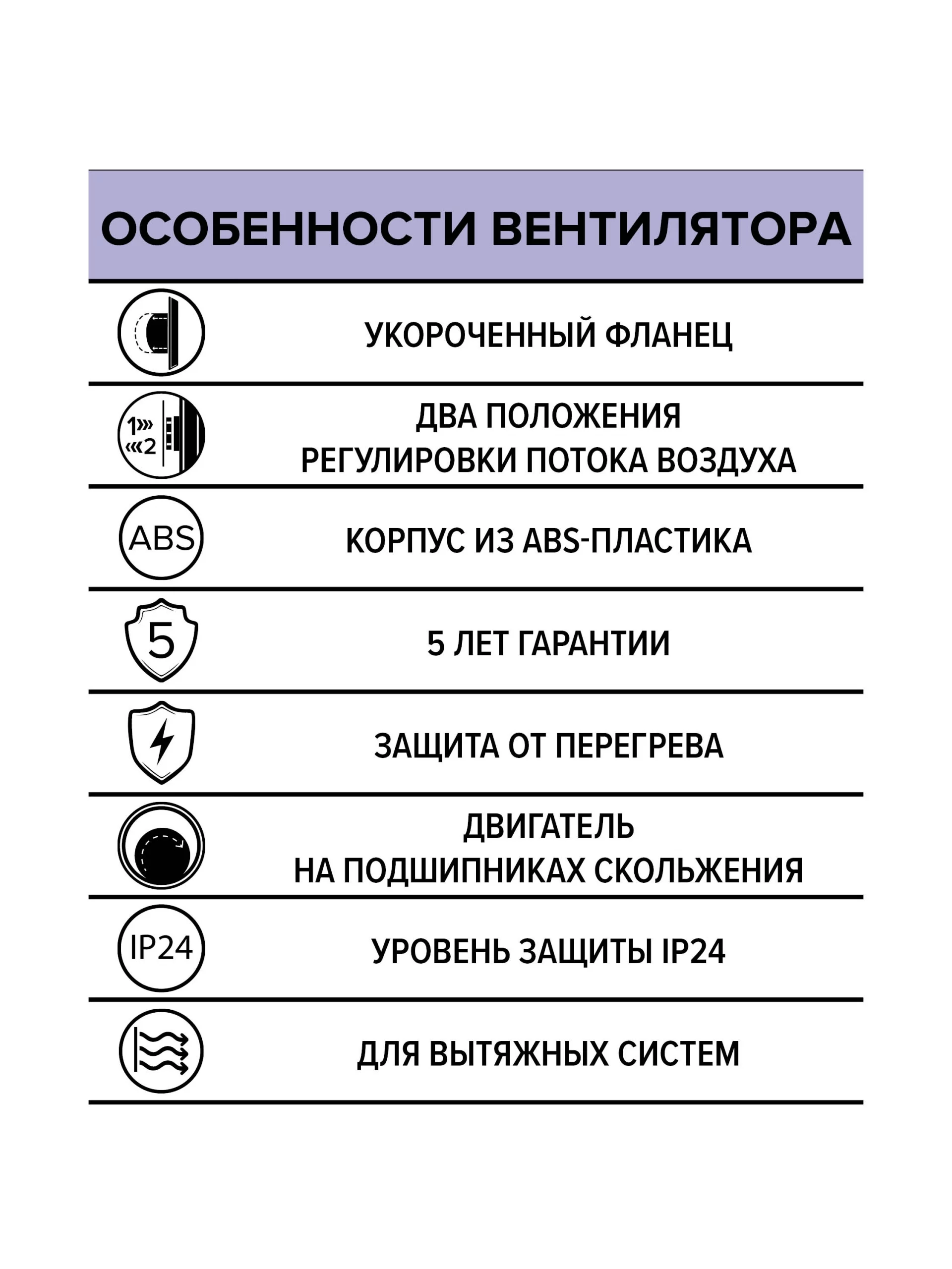 Укороченный фланец позволяет монтировать вентилятор, когда есть ограничения по глубине вентиляционной шахты, а также в потолок (c опцией BB).