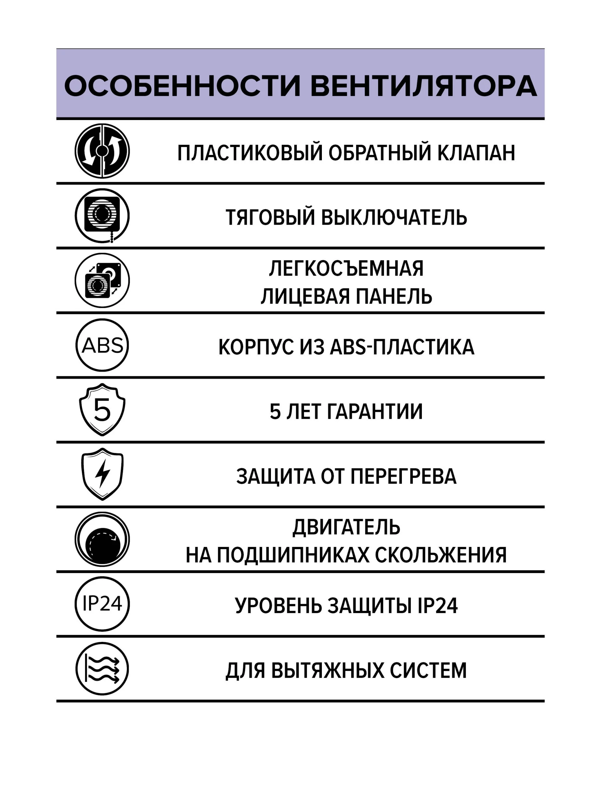 Вентилятор накладной QUADRO D100 обратный клапан тяговый выключатель ERA