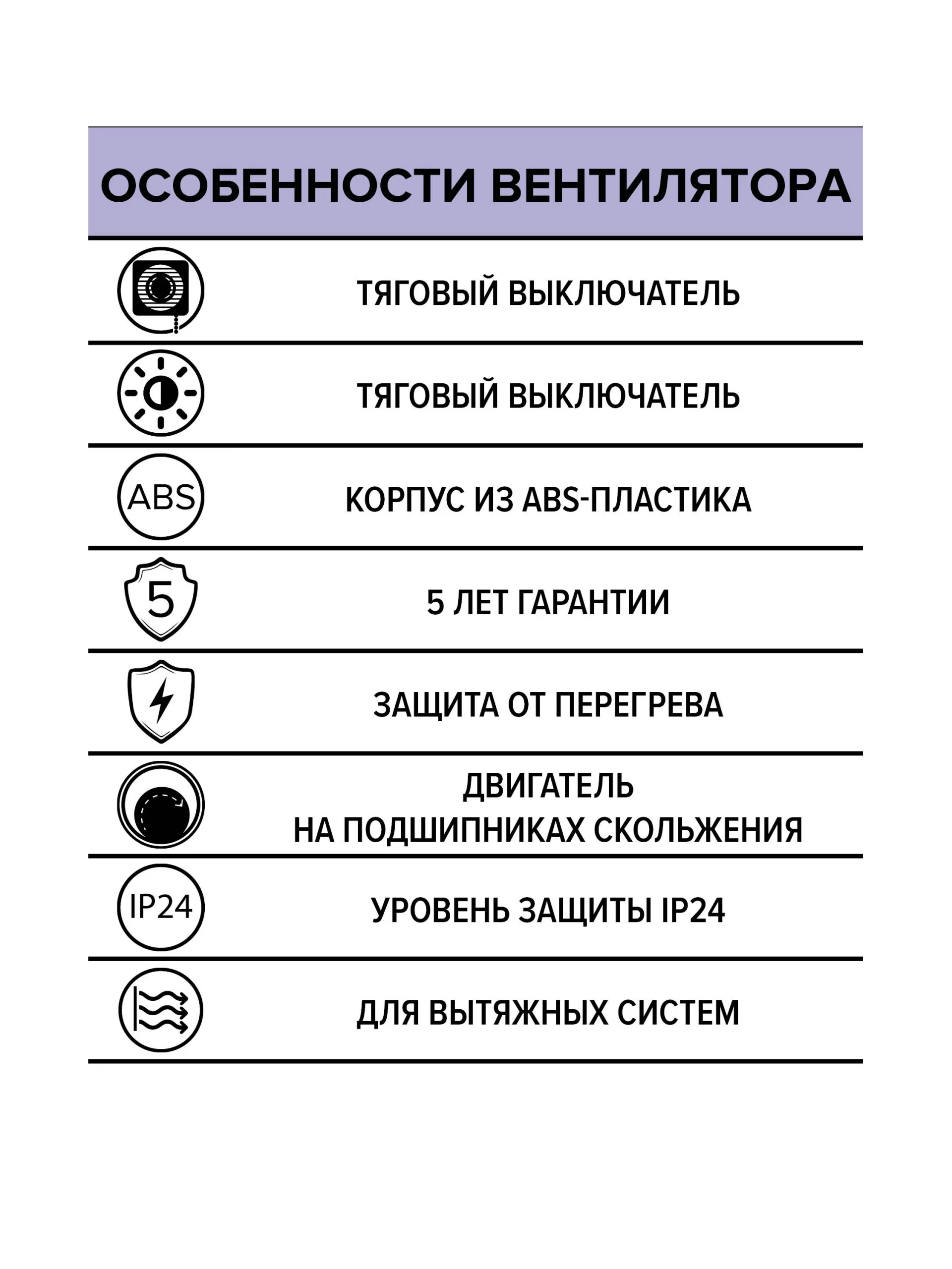 Вентилятор накладной STANDARD D100 тяговый выключатель ERA