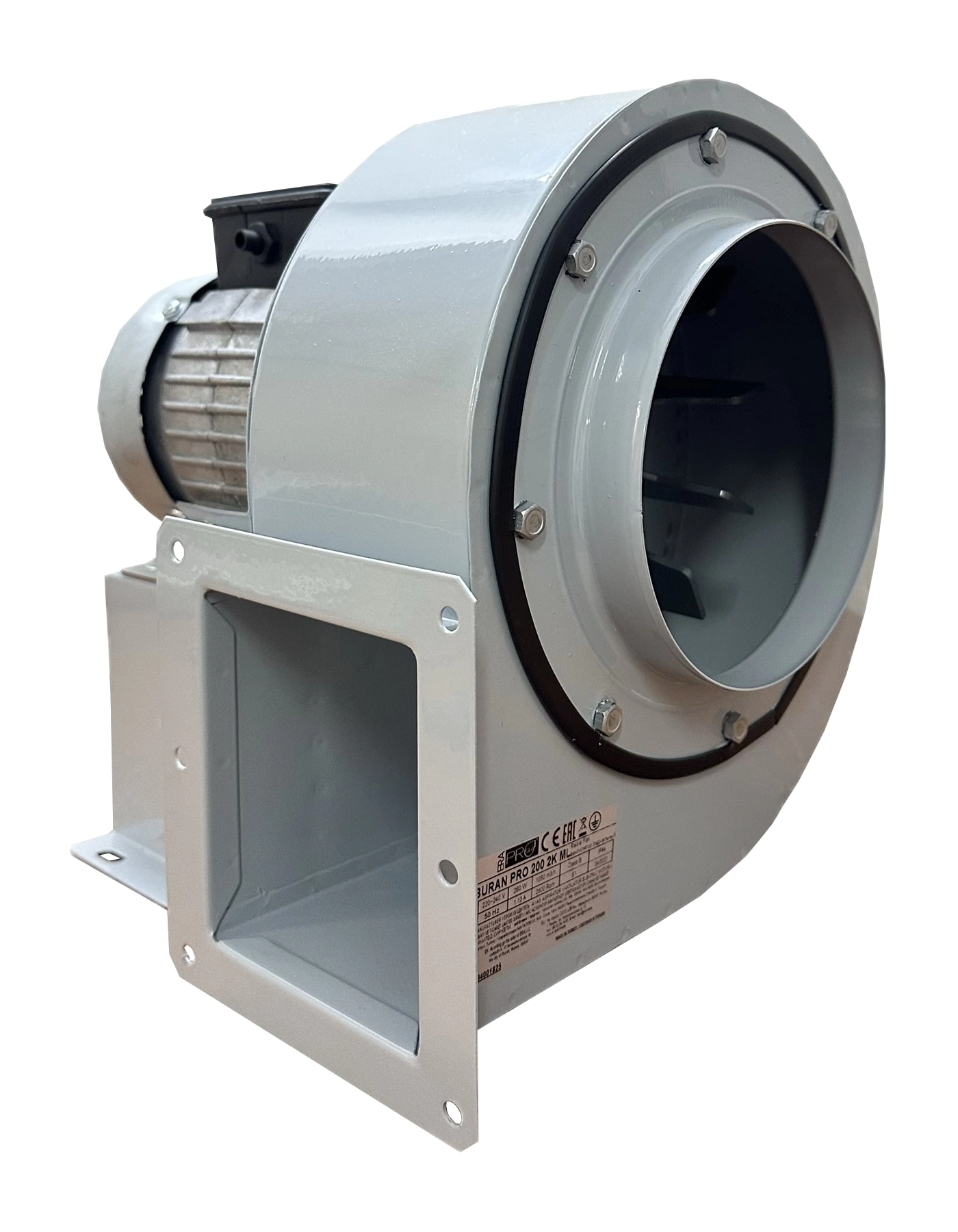 В вентиляторах BURAN PRO 140 2K M R, BURAN PRO 200 2K M R, BURAN PRO 260 2K M R установлен двухполюсной двигатель, выходное отверстие находится справа относительно оси двигателя.