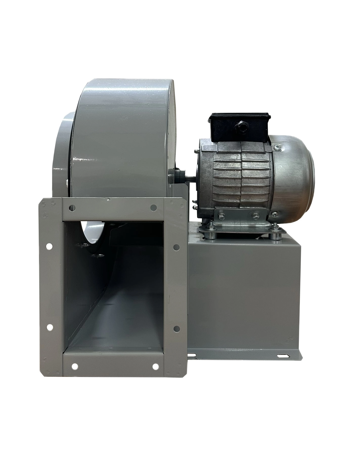 Радиальный вентилятор с внешним двигателем и спиральным корпусом оснащен крыльчаткой из оцинкованной стали с прямыми лопатками открытого типа и предназначен для организации систем местной или общеобменной приточно-вытяжной вентиляции с развитой сетью воздуховодов. Может
