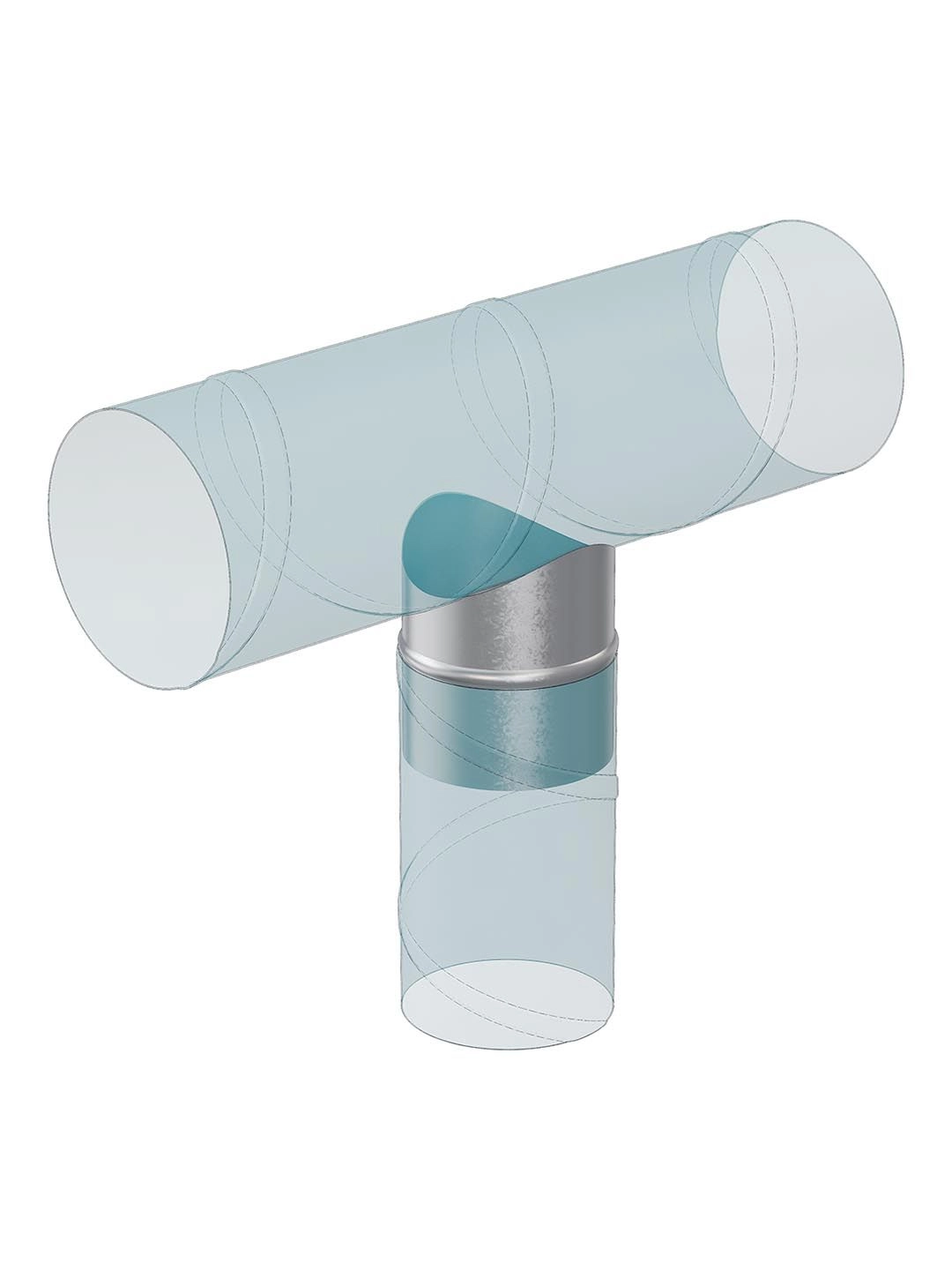 Прямые врезки для круглых каналов изготовлены из оцинкованной стали. Для соединения каналов соответствующего диаметра или создания ответвления воздушного потока от главной магистрали. Присоединяются к вентиляционной трубе с помощью заклепок или саморезов. Таким образом обеспечивается надежность соединения и эффективность работы вентиляции. Возможно изготовление специальных изделий.