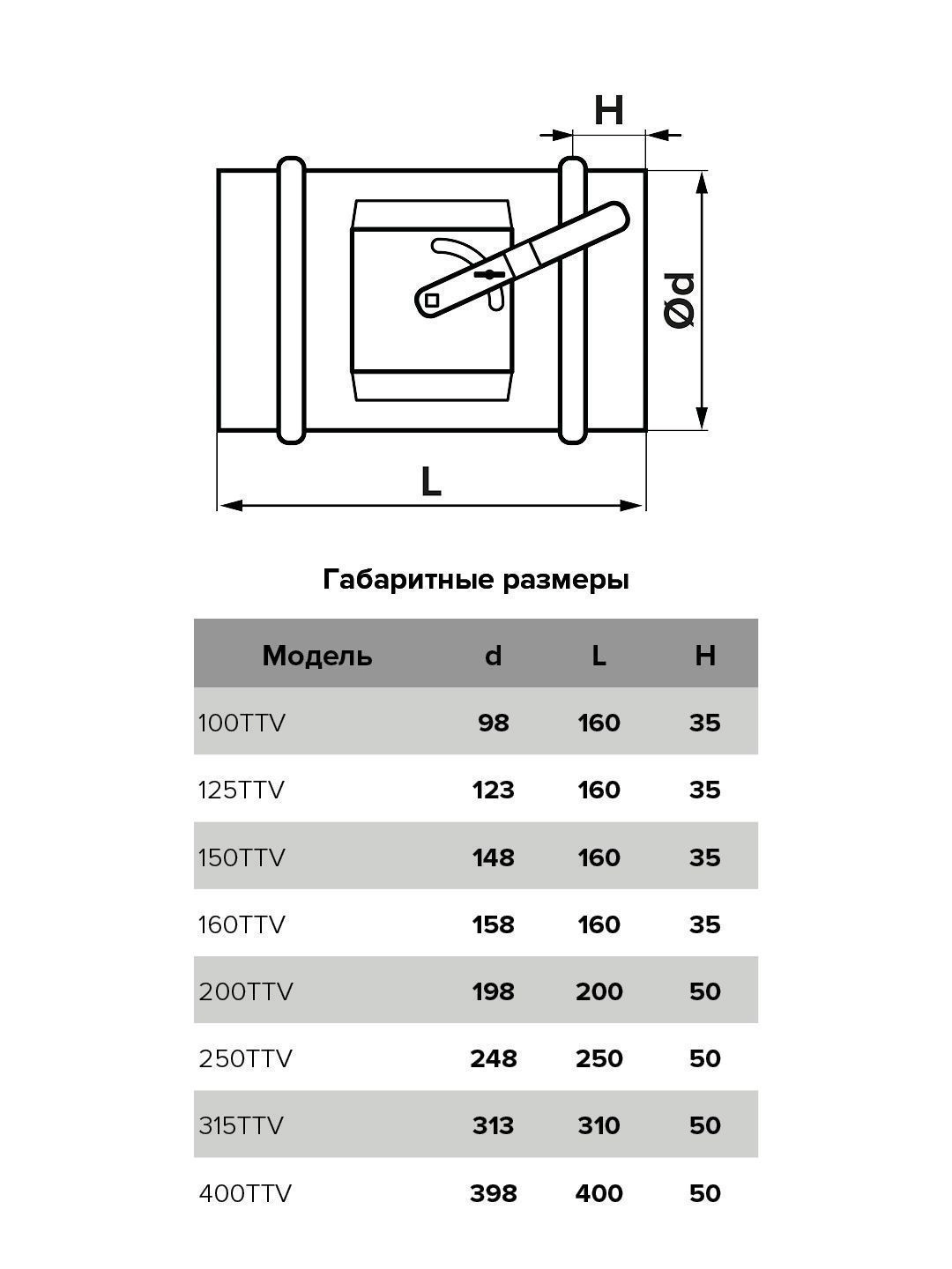 Дроссель-клапан для круглых воздуховодов TTV изготовлен из оцинкованной стали, имеет пластиковые втулки. Для регулирования расхода приточного, рециркуляционного или вытяжного воздуха в системах вентиляции и кондиционирования, рабочее давление которых не превышает 1500 Па. В качестве исполнительного механизма используется рукоятка (ручное управление). Соединение осуществляется напрямую с воздуховодом. Возможно изготовление специальных изделий.