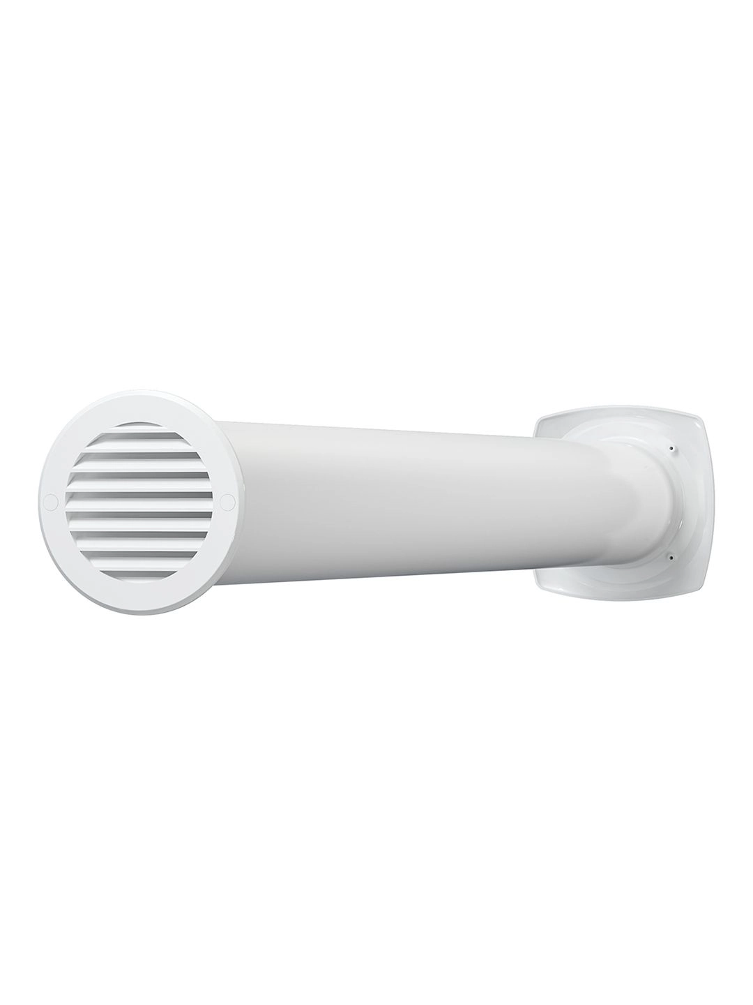 Снаружи закрывается стенным выходом в зависимости от модели, изнутри — регулируемой заслонкой.