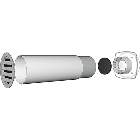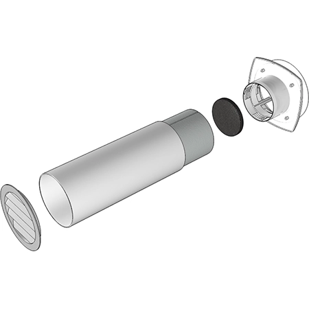 Снаружи закрывается стенным выходом в зависимости от модели, изнутри — регулируемой заслонкой.