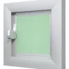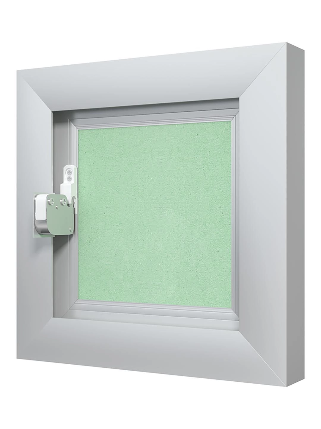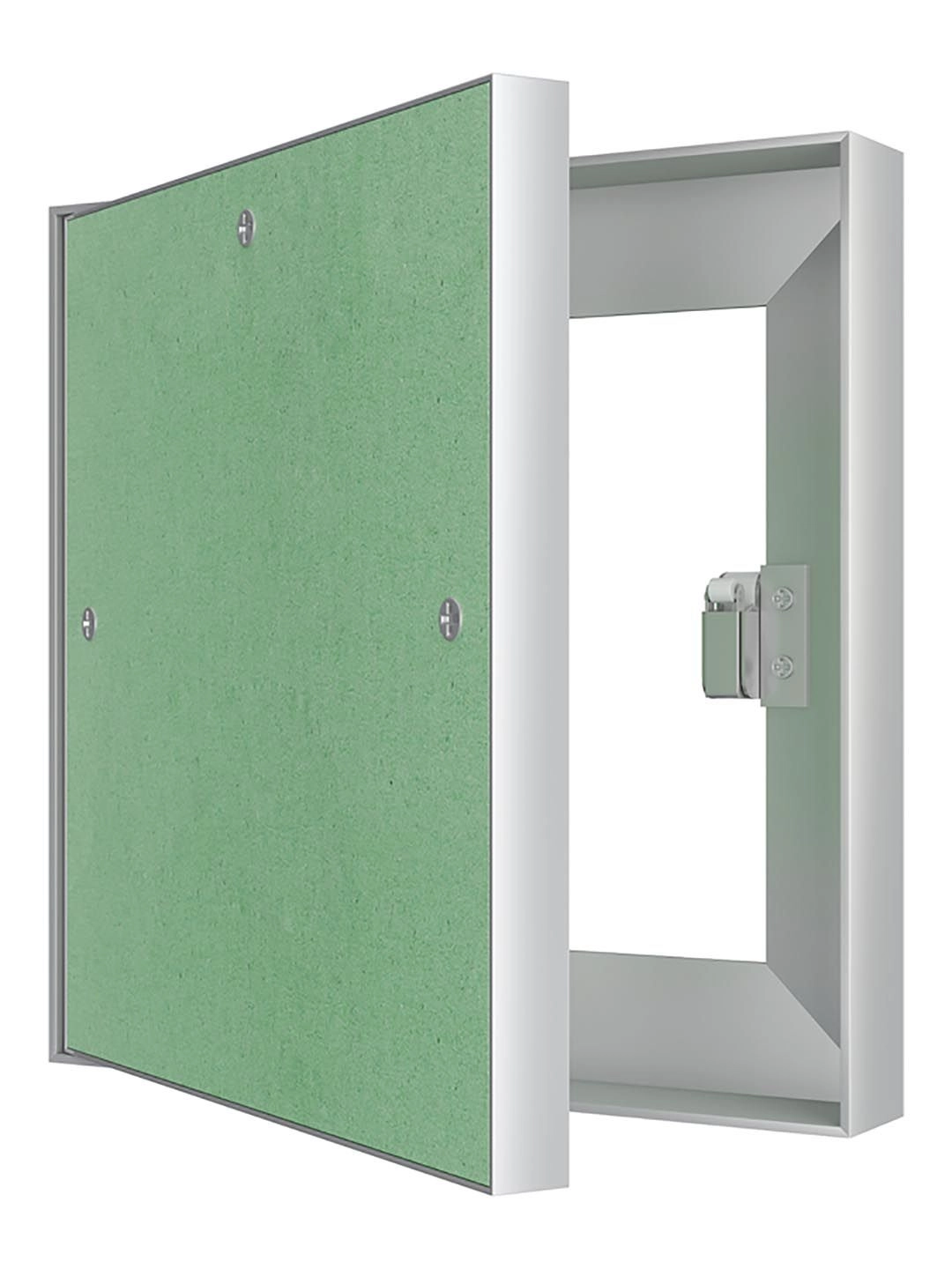 Дверца люка заполнена влагостойким гипсокартоном, открывается и закрывается легким нажатием.