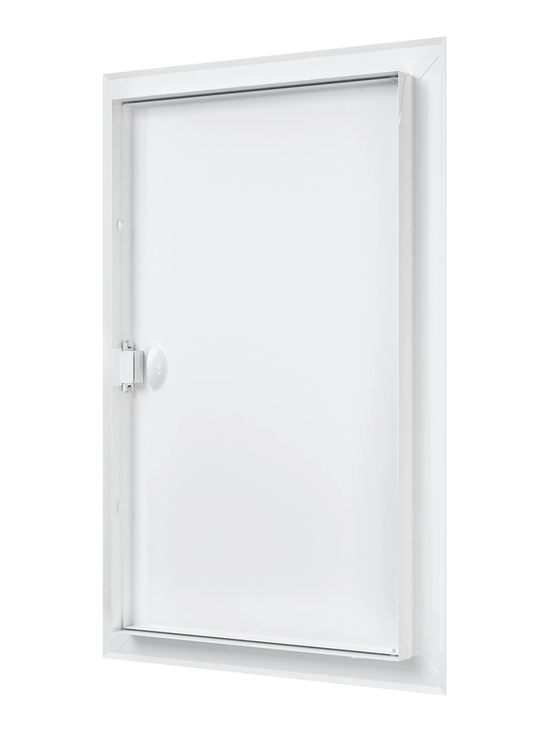 Устанавливается в стену. Оснащен ручкой для удобства открывания/закрывания люка, магнитными замками для фиксации дверцы в закрытом положении и предотвращения случайного открывания. По контуру дверцы имеется рамка, которая скрывает любые неровности проема.