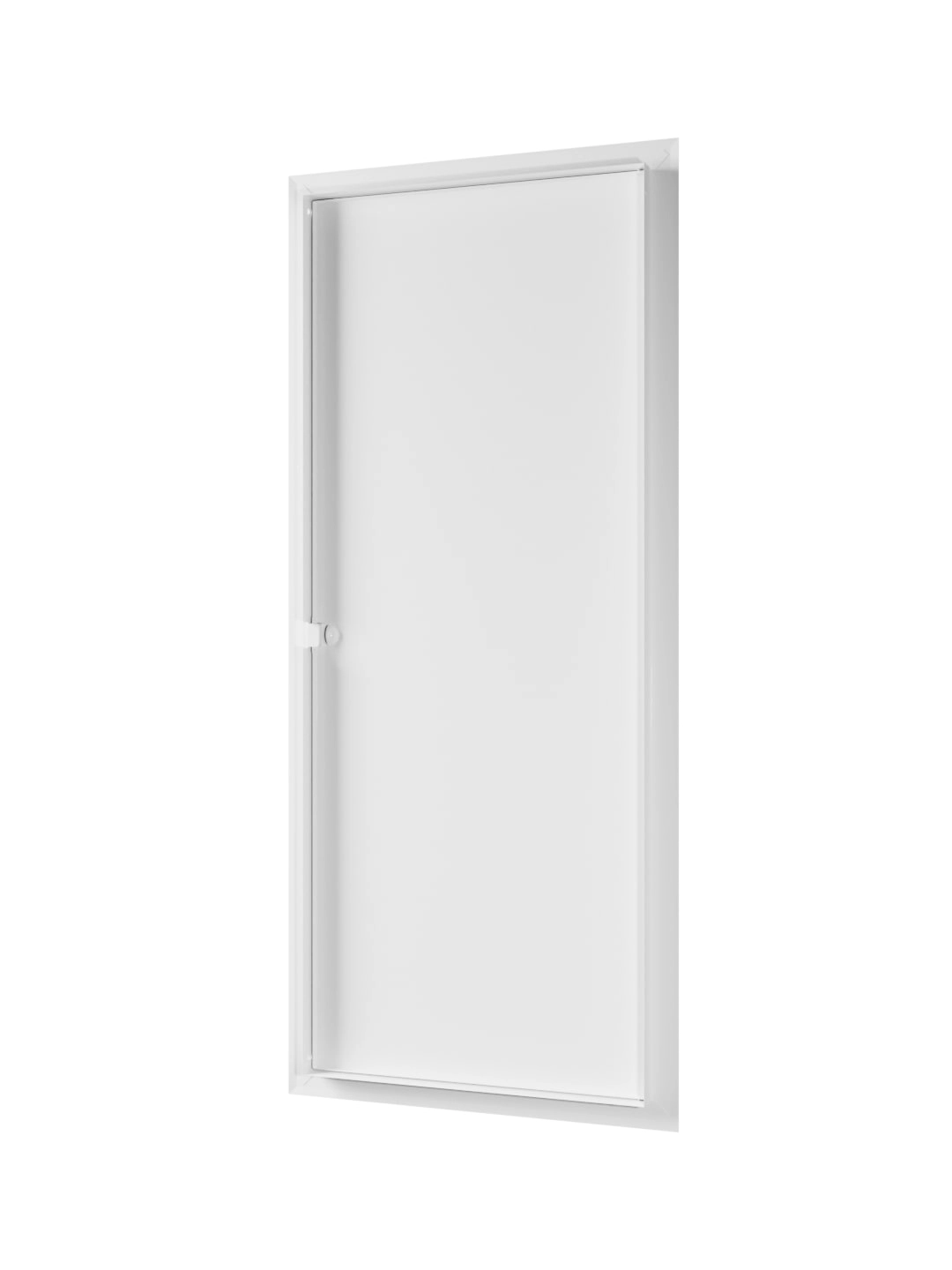 Устанавливается в стену. Оснащен ручкой для удобства открывания/закрывания люка, магнитными замками для фиксации дверцы в закрытом положении и предотвращения случайного открывания. По контуру дверцы имеется рамка, которая скрывает любые неровности проема.