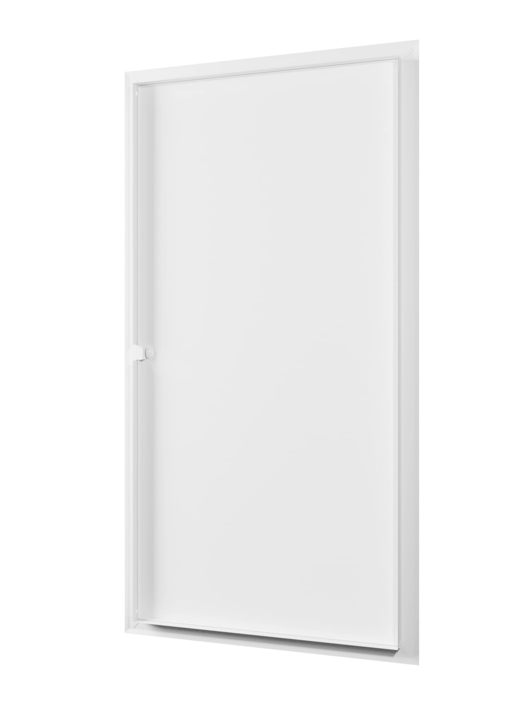 Устанавливается в стену. Оснащен ручкой для удобства открывания/закрывания люка, магнитными замками для фиксации дверцы в закрытом положении и предотвращения случайного открывания. По контуру дверцы имеется рамка, которая скрывает любые неровности проема.