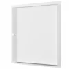 Устанавливается в стену. Оснащен ручкой для удобства открывания/закрывания люка, магнитными замками для фиксации дверцы в закрытом положении и предотвращения случайного открывания. По контуру дверцы имеется рамка, которая скрывает любые неровности проема.