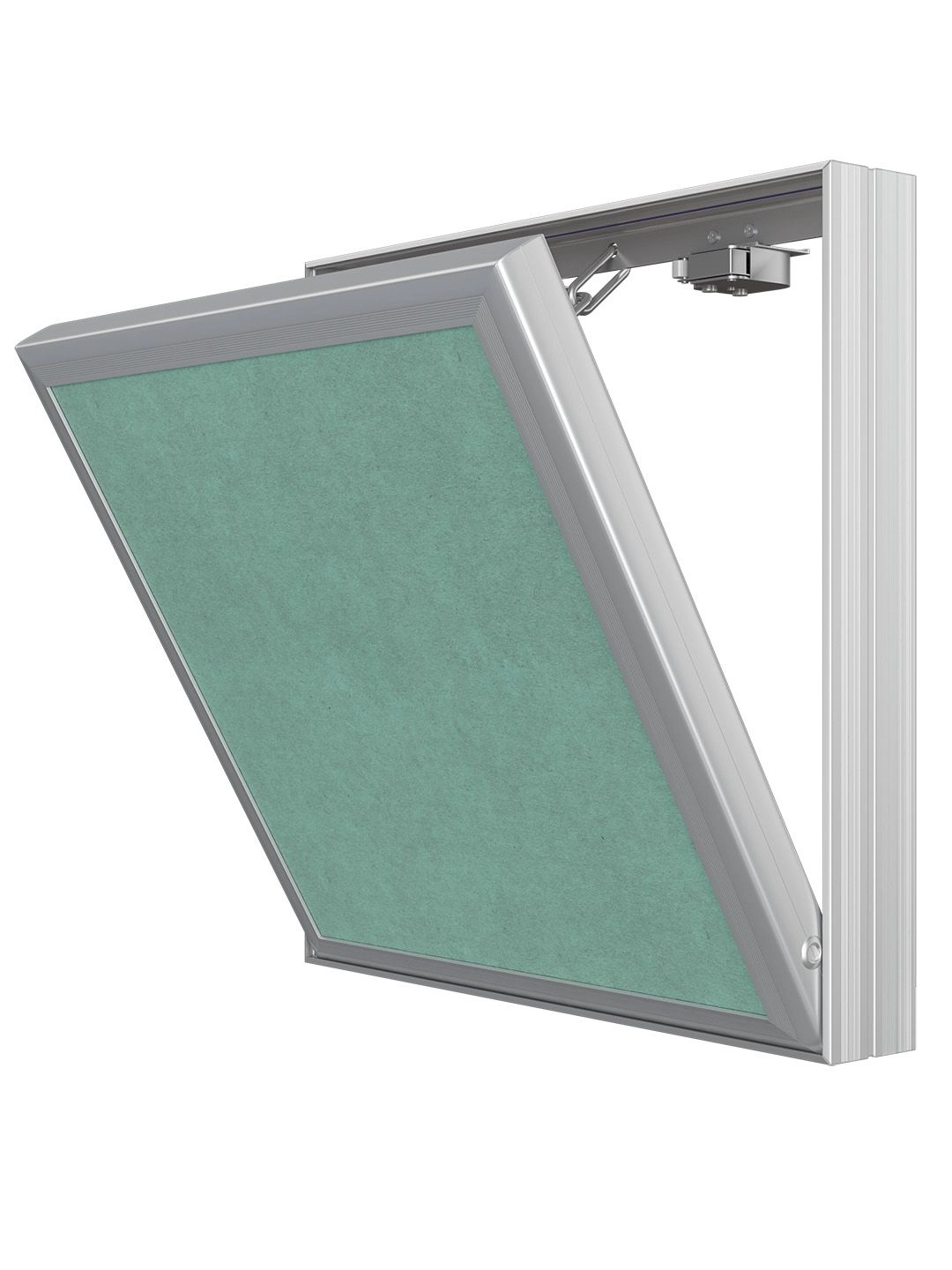 Люки изготавливаются из алюминиевого профиля. Дверца заполнена влагостойким гипсокартоном (ГКЛВ). Конструкция оснащена нажимным замком, резиновым уплотнителем, страховочным механизмом для безопасного открытия дверцы, имеет возможность полного снятия дверцы. Максимальный угол открытия — 180 градусов.