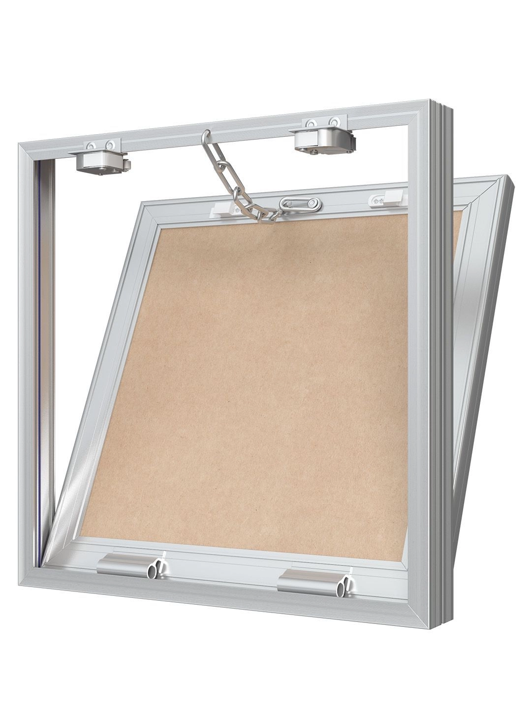 Люки изготавливаются из алюминиевого профиля. Дверца заполнена влагостойким гипсокартоном (ГКЛВ). Конструкция оснащена нажимным замком, резиновым уплотнителем, страховочным механизмом для безопасного открытия дверцы, имеет возможность полного снятия дверцы. Максимальный угол открытия — 180 градусов.