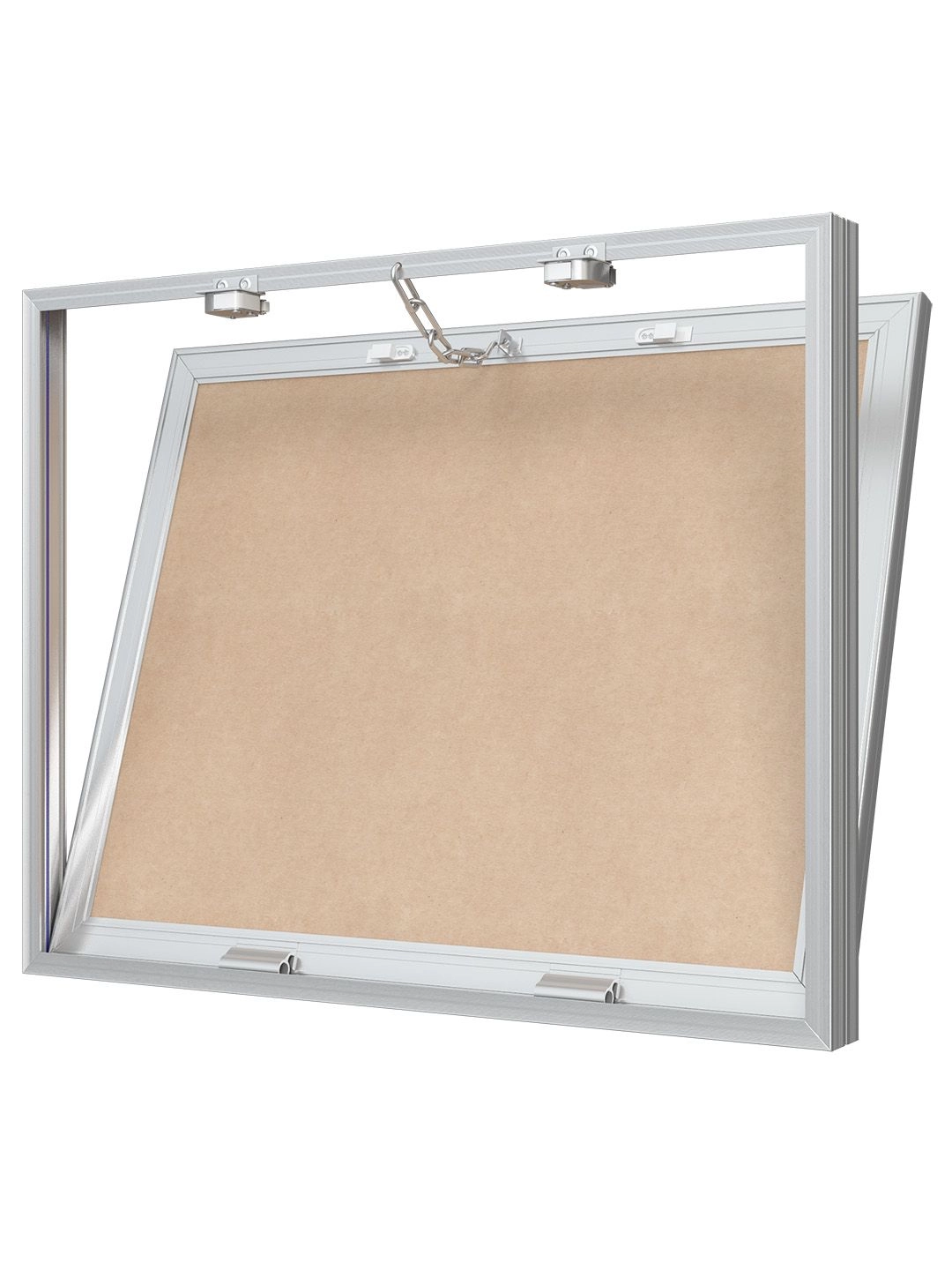 Люки изготавливаются из алюминиевого профиля. Дверца заполнена влагостойким гипсокартоном (ГКЛВ). Конструкция оснащена нажимным замком, резиновым уплотнителем, страховочным механизмом для безопасного открытия дверцы, имеет возможность полного снятия дверцы. Максимальный угол открытия — 180 градусов.