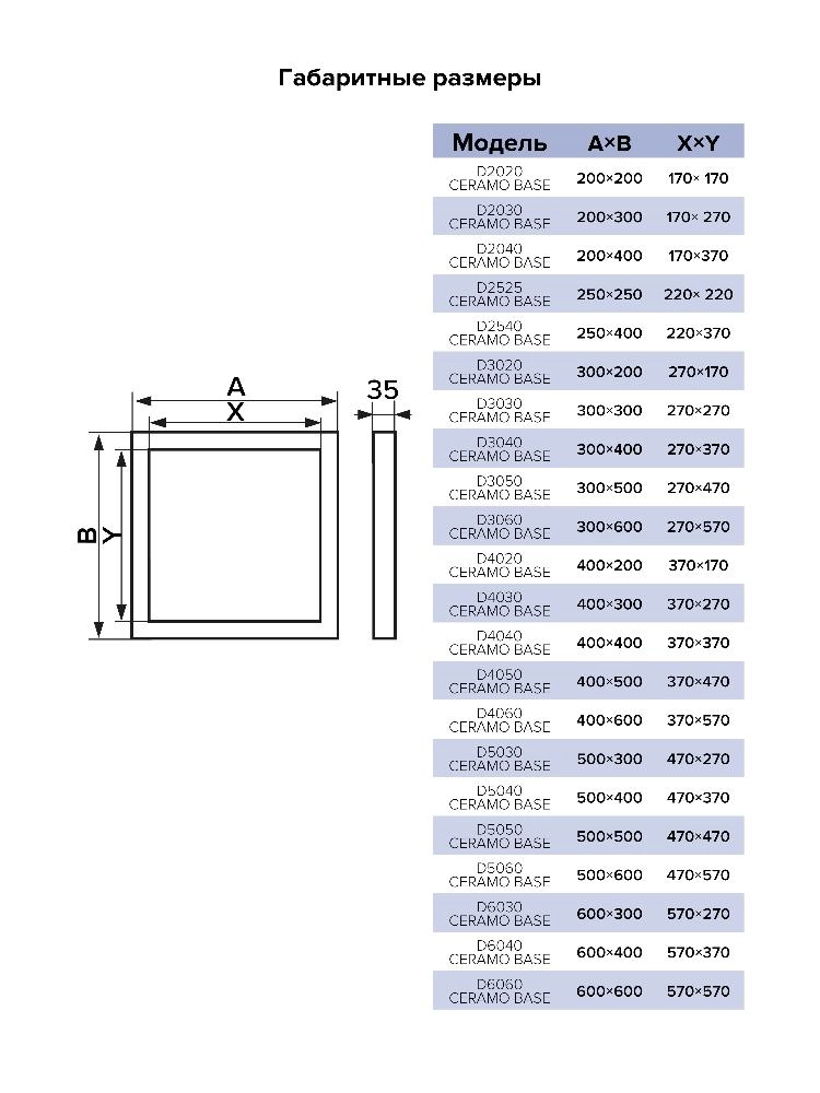 Люки ревизионные под плитку D Ceramo Base с фронтальным открытием дверцы предназначены для скрытого доступа и обслуживания инженерных, сантехнических, электрических и прочих коммуникаций. Люки устанавливаются в нишах стен и перегородок, изготовленных из кладочных (кирпич, бетон, пенобетон и др.) или листовых (гипсокартон и др.) материалов. Открываются и закрываются легким нажатием на дверцу, после закрытия надежно фиксируются в раме. Люки изготавливаются из алюминиевого профиля. Дверца заполнена влагостойким гипсокартоном (ГКЛВ). Конструкция оснащена нажимным замком, резиновым уплотнителем, страховочным механизмом для безопасного открытия дверцы, имеет возможность полного снятия дверцы. Максимальный угол открытия — 180 градусов.