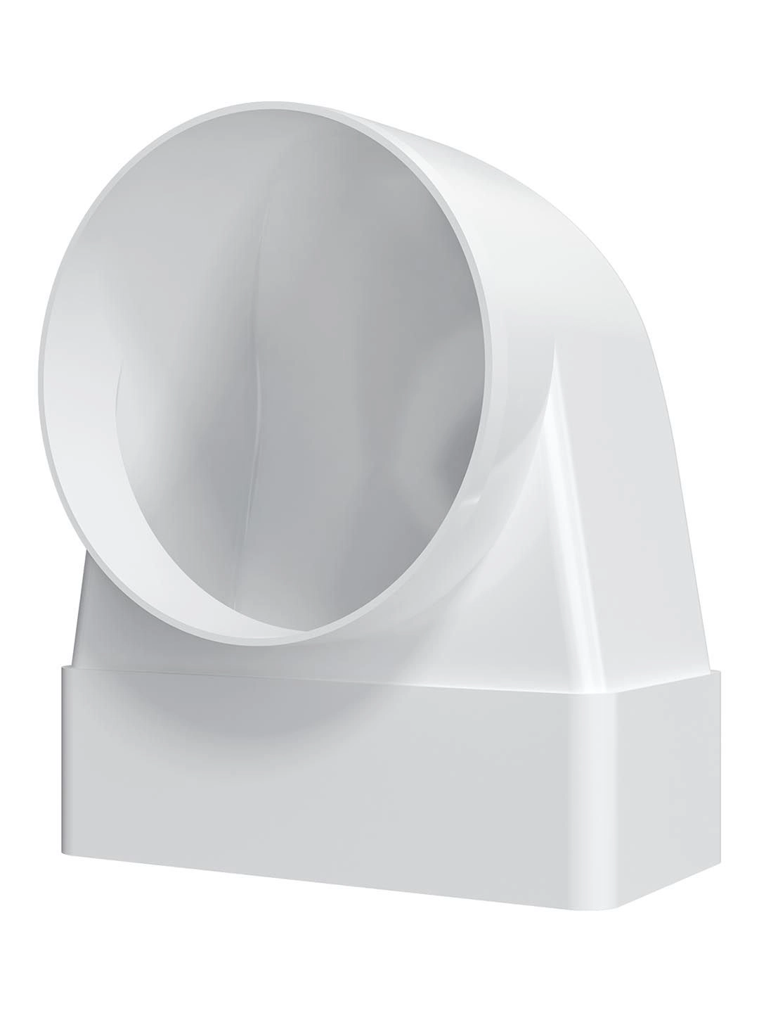 Переходник для соединения напрямую плоских воздуховодов с прямоугольными и круглыми под углом 90°.