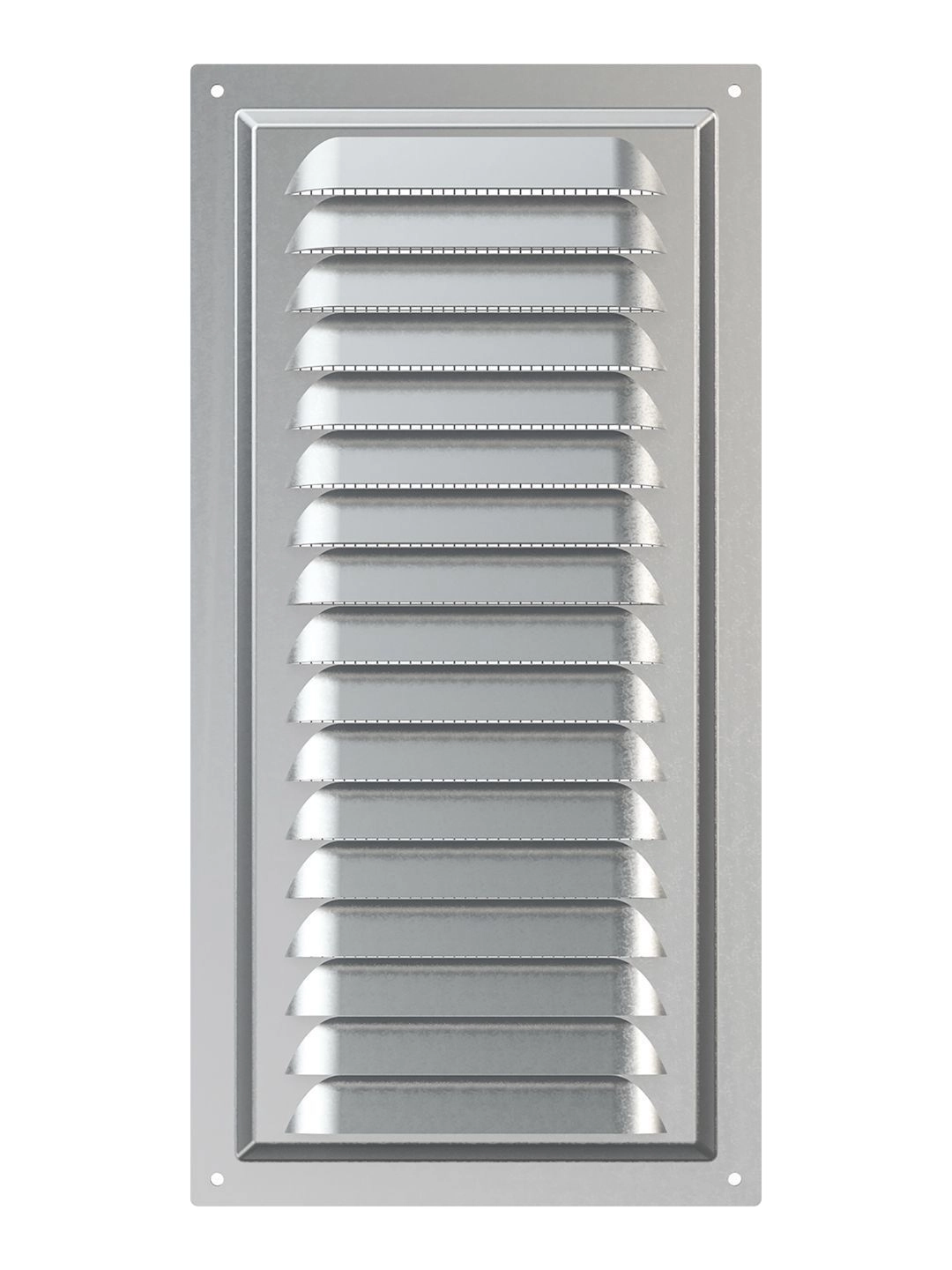 Вентиляционная решетка МЦ изготавливается из оцинкованной стали. Имеет наклонные жалюзи и антимоскитную сетку для защиты от насекомых. Сетка устанавливается в специальном углублении.