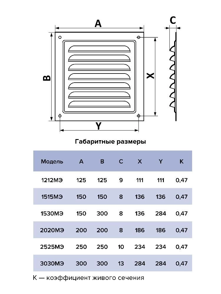 Решетка МЭ изготавливается из оцинкованной стали, которая покрывается полимерной эмалью. Имеет наклонные жалюзи.