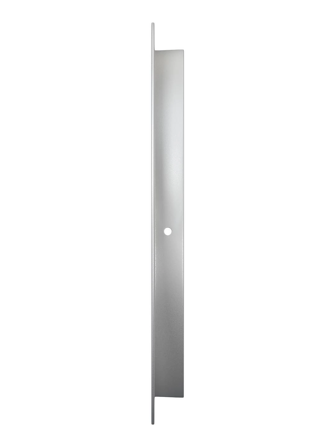 Наружная приточно-вытяжная решетка РКМ монтируется на внешних стенах. Имеет наклонные жалюзи, скрывающие от глаз вентиляционный канал. Решетка изготовлена из алюминиевого сплава, антимоскитная сетка — из нержавеющей стали. Соединяется с воздуховодами через круглый фланец.