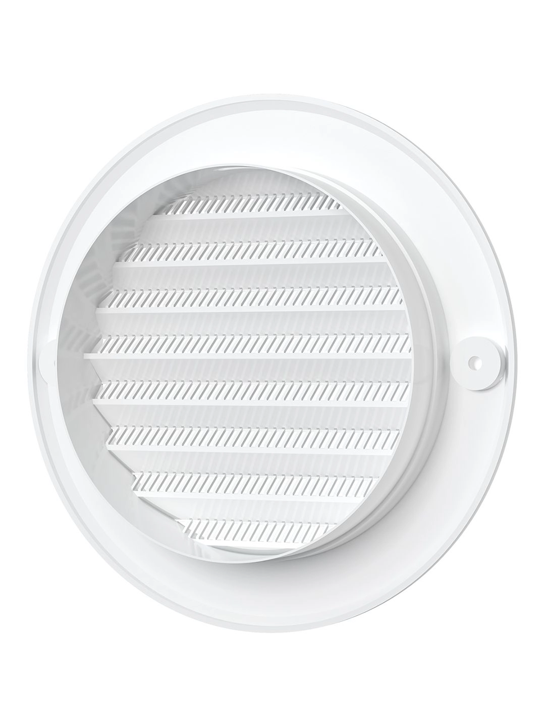 Изделие оборудовано монтажным фланцем для соединения с круглыми воздуховодами. Наклонные жалюзи скрывают шахту вентиляции и придают ей эстетичный вид.