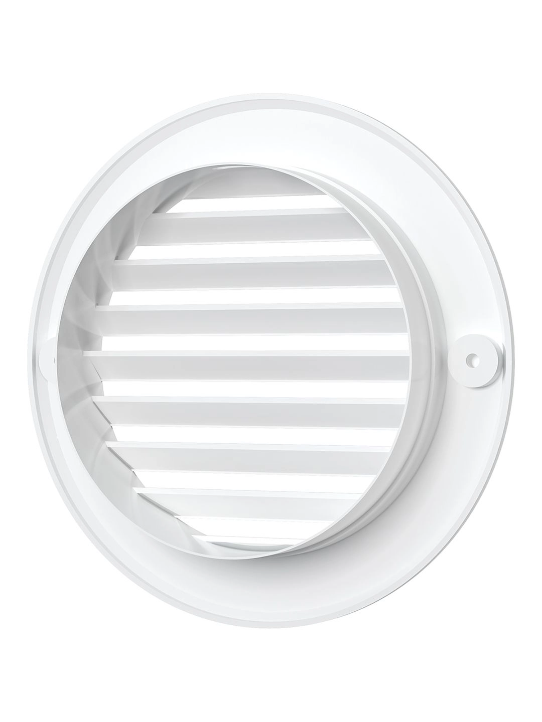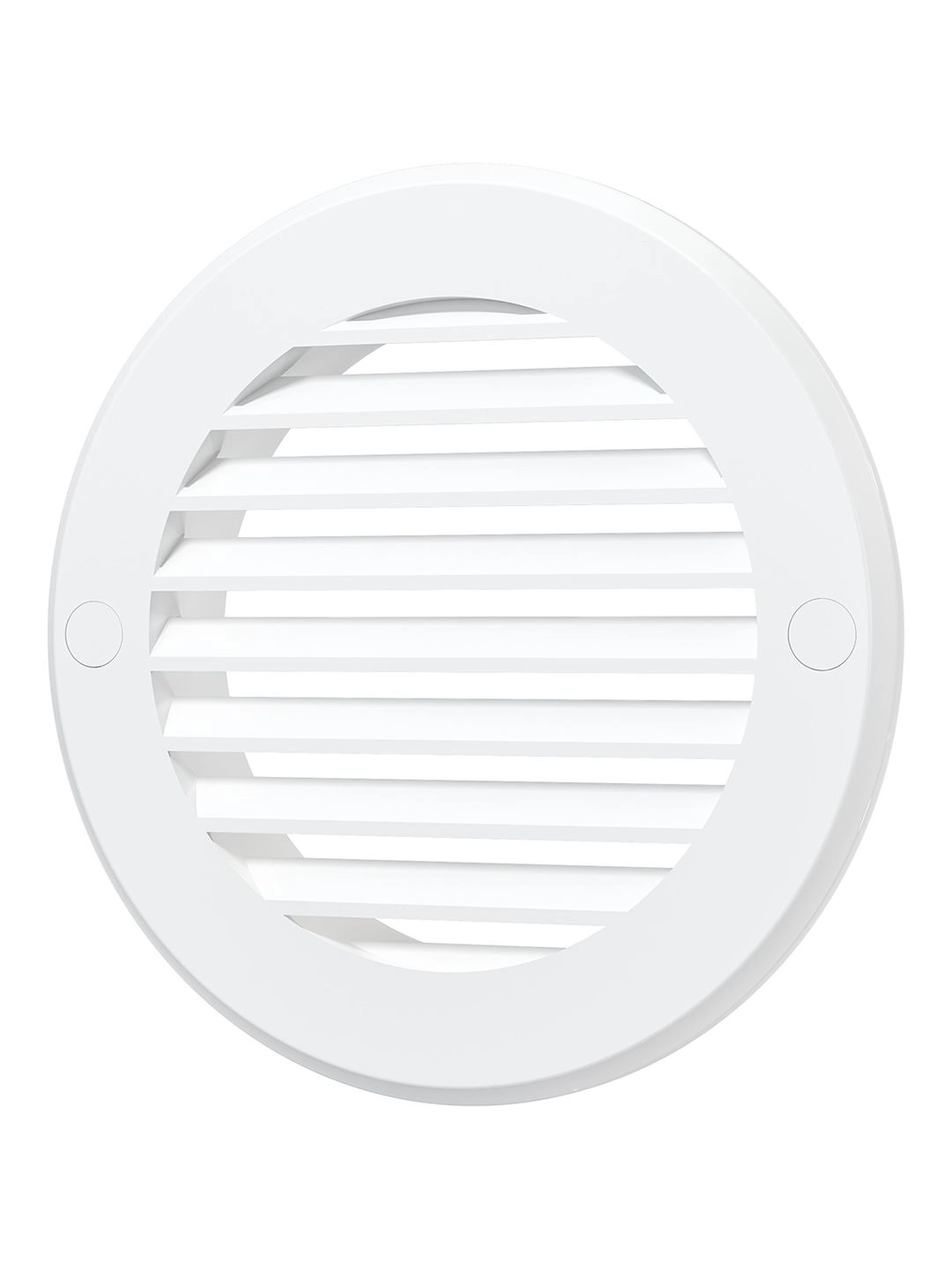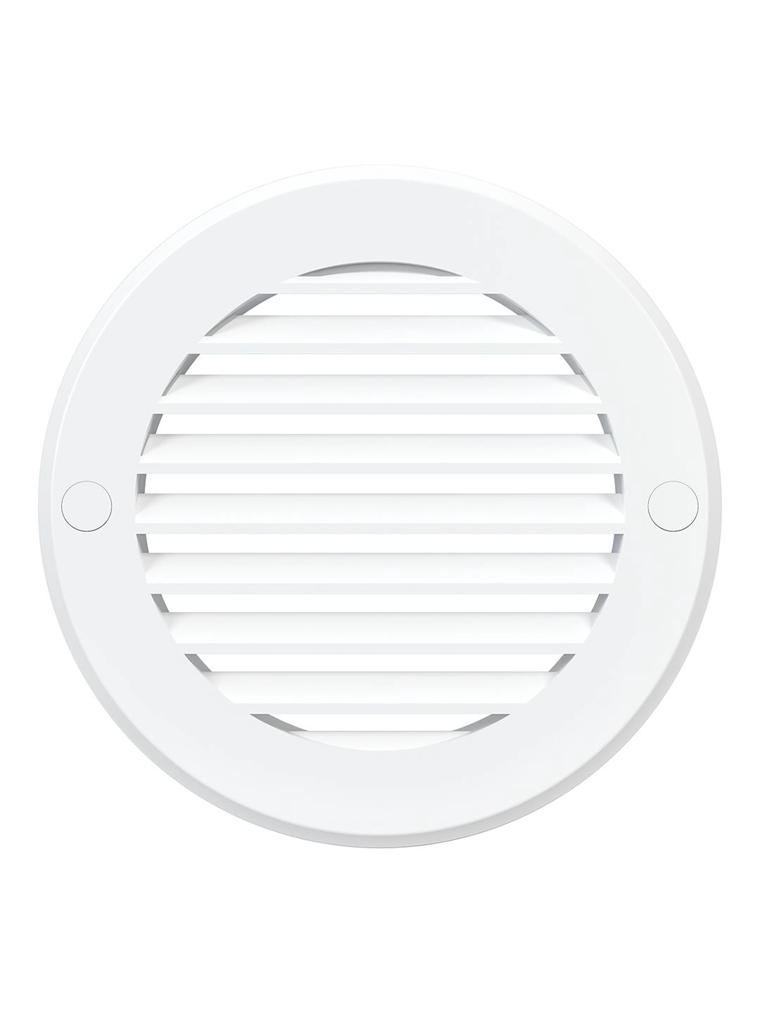 Решетка РК оснащена наклонными жалюзи, скрывающими от глаз вентиляционную шахту. Монтируется с круглыми пластиковыми воздуховодами ВП, соединяется при помощи фланца.