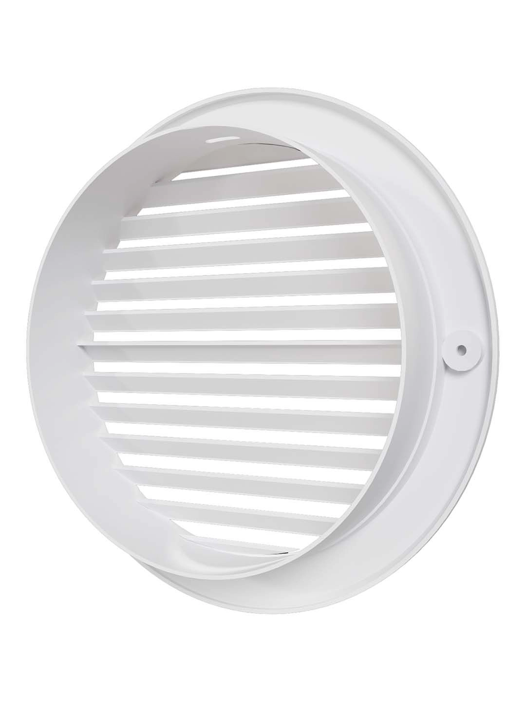 Решетка РК оснащена наклонными жалюзи, скрывающими от глаз вентиляционную шахту. Монтируется с круглыми пластиковыми воздуховодами ВП, соединяется при помощи фланца.