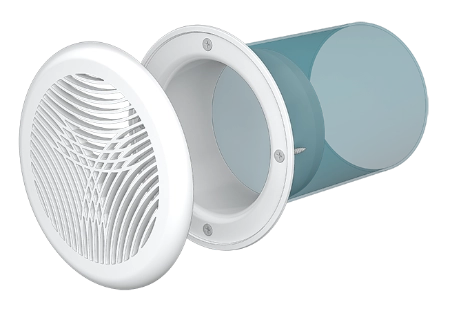 РПКФ выделяется среди других круглых решеток нестандартным дизайном жалюзи. Решетка легко отделяется от фланца для удобного обслуживания.