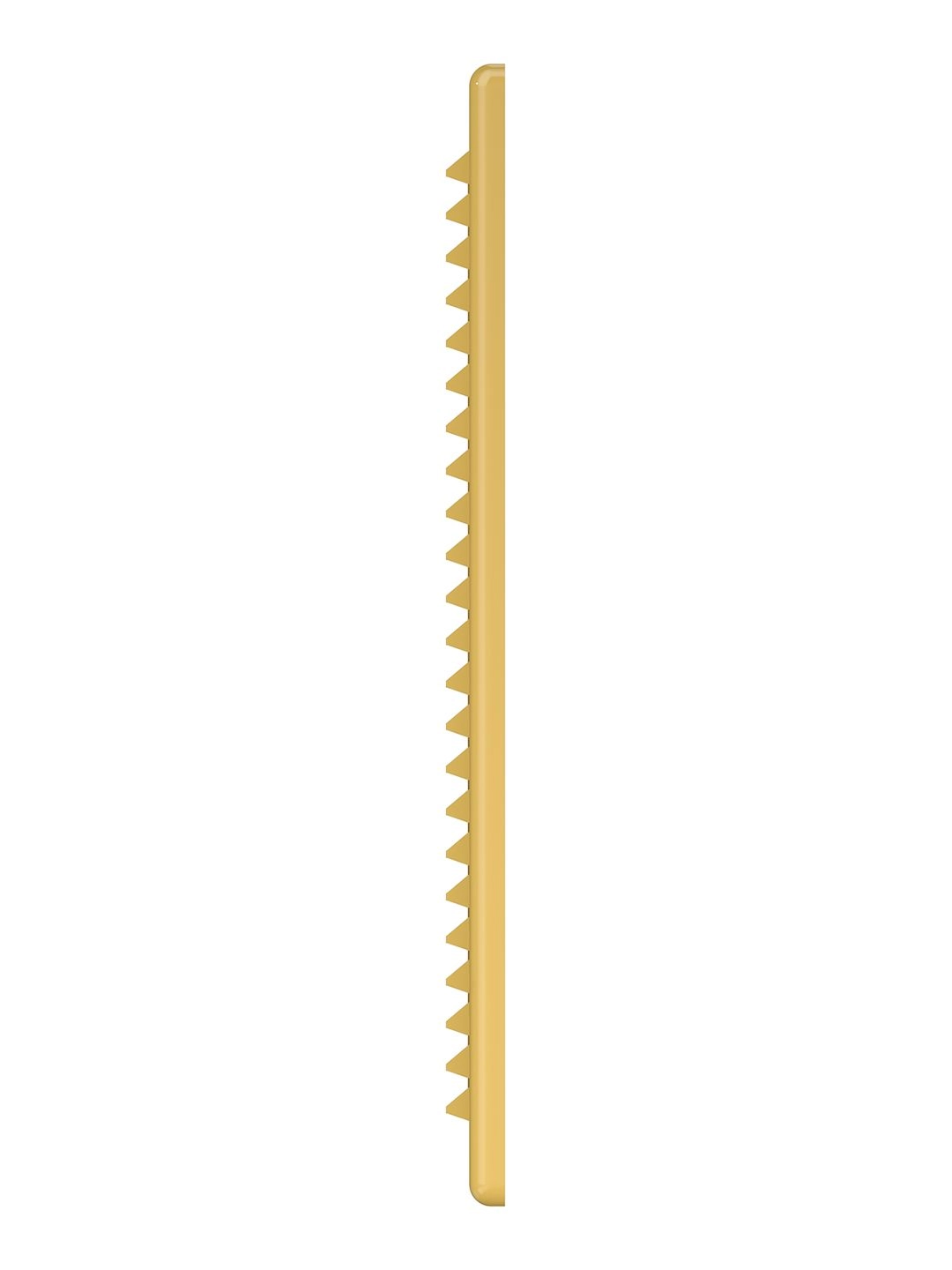 Вентиляционная решетка Р состоит из двух частей: рамки и решетки с жалюзи. Решетка не крепится непосредственно к стене или к потолку, а вставляется в рамку, которая монтируется на поверхности. Это позволяет легко снимать изделие для обслуживания: необходимо достать решетку из рамки, а затем также легко вернуть на место. Решетка оснащена наклонными жалюзи, которые помогают скрыть вентиляционный выход, а также антимоскитной сеткой для защиты от насекомых. Решетки Р представлены также в белом, коричневом и черных цветах.