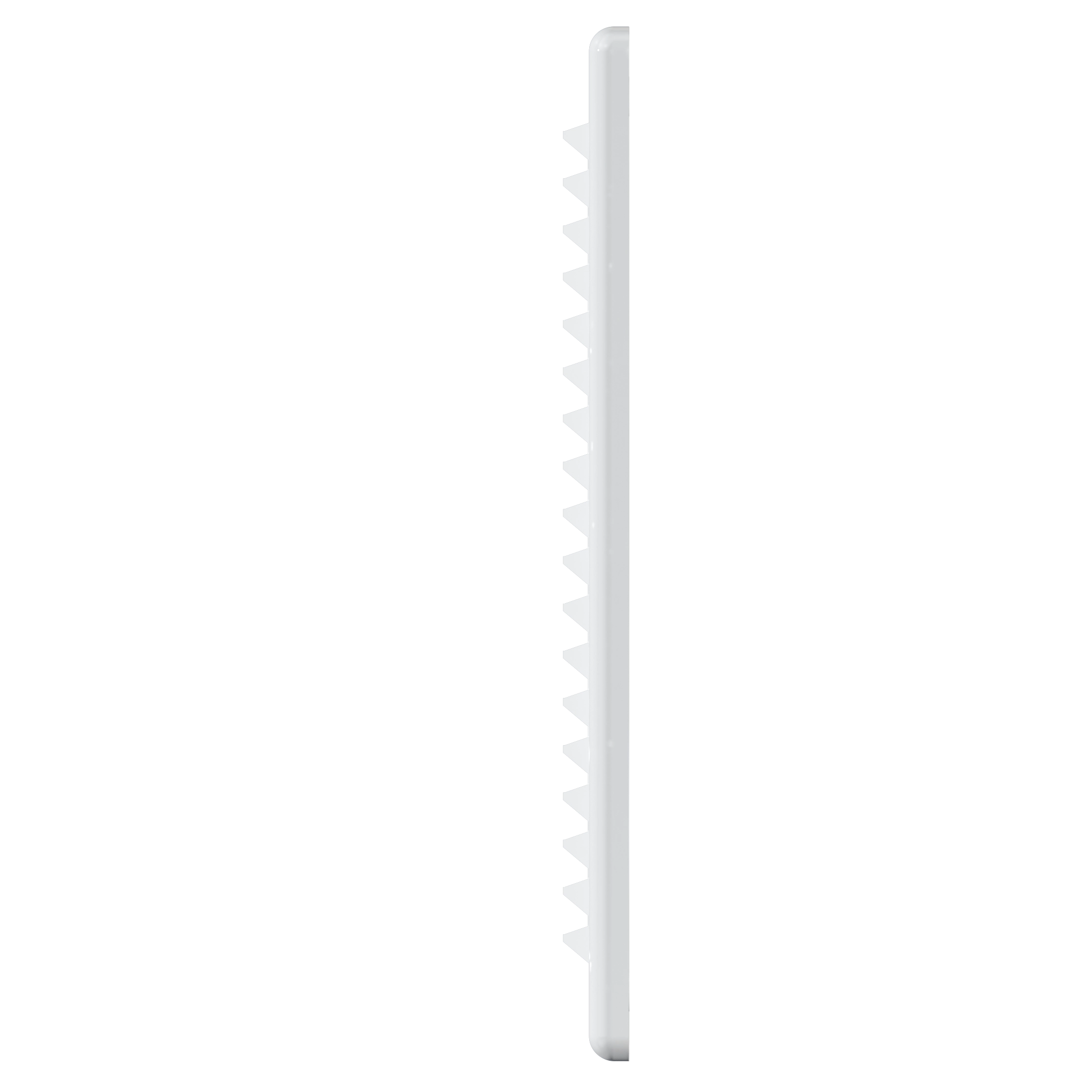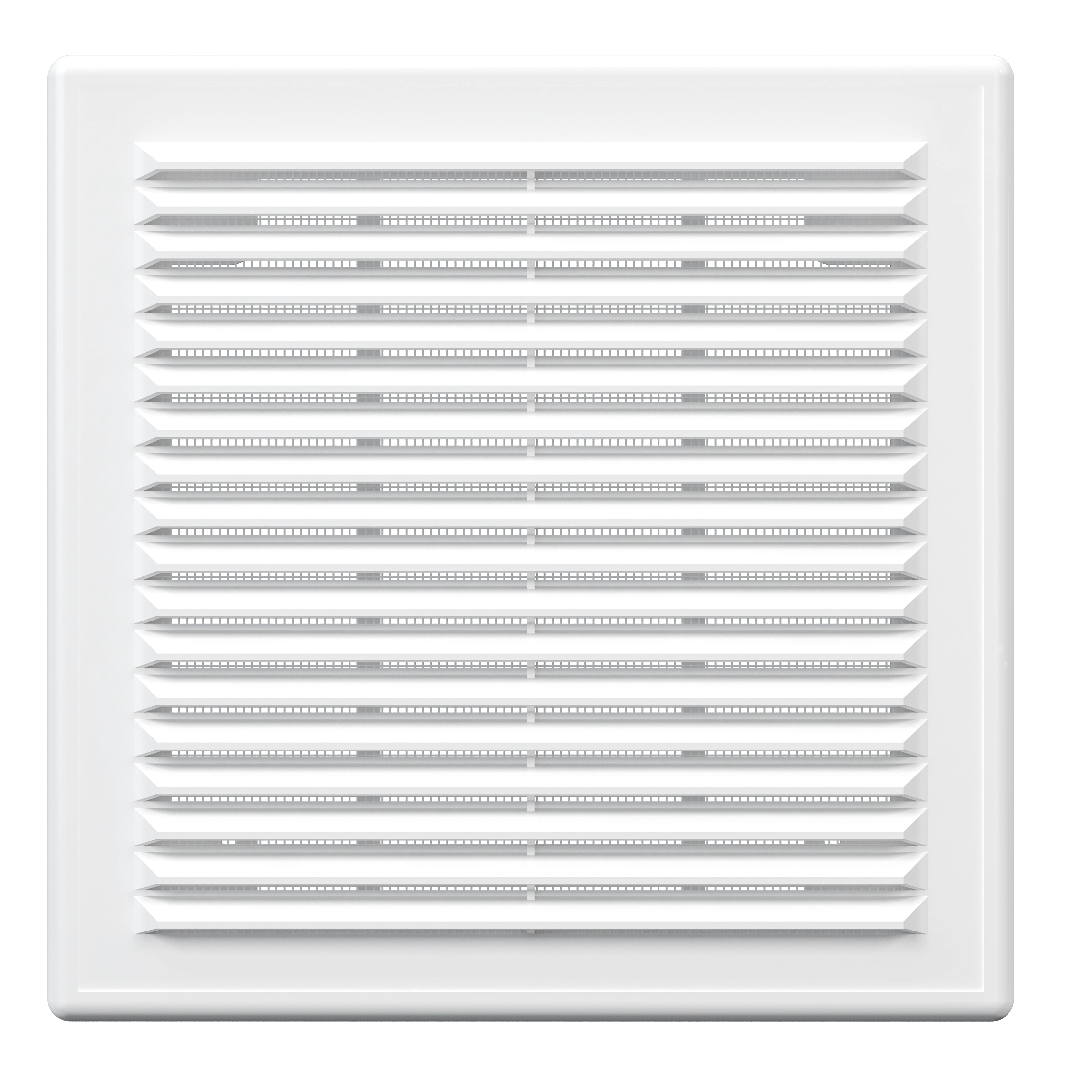 Вентиляционная решетка Р состоит из двух частей: рамки и решетки с жалюзи. Решетка не крепится непосредственно к стене или к потолку, а вставляется в рамку, которая монтируется на поверхности. Это позволяет легко снимать изделие для обслуживания: необходимо достать решетку из рамки, а затем также легко вернуть на место. Решетка оснащена наклонными жалюзи, которые помогают скрыть вентиляционный выход, а также антимоскитной сеткой для защиты от насекомых. Решетки Р представлены также в коричневом, бежевом и черных цветах.