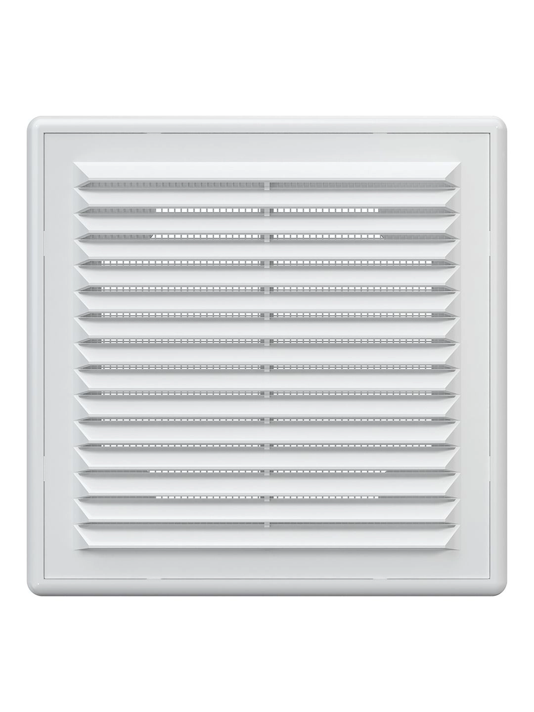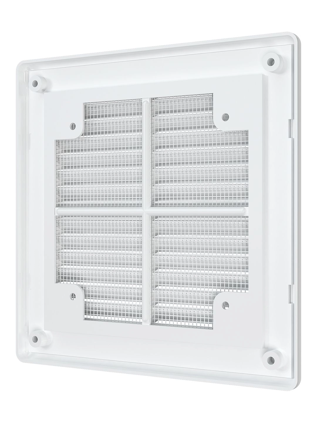 Вентиляционная решетка Р состоит из двух частей: рамки и решетки с жалюзи. Решетка не крепится непосредственно к стене или к потолку, а вставляется в рамку, которая монтируется на поверхности. Это позволяет легко снимать изделие для обслуживания: необходимо достать решетку из рамки, а затем также легко вернуть на место. Решетка оснащена наклонными жалюзи, которые помогают скрыть вентиляционный выход, а также антимоскитной сеткой для защиты от насекомых. Решетки Р представлены также в коричневом, бежевом и черных цветах.