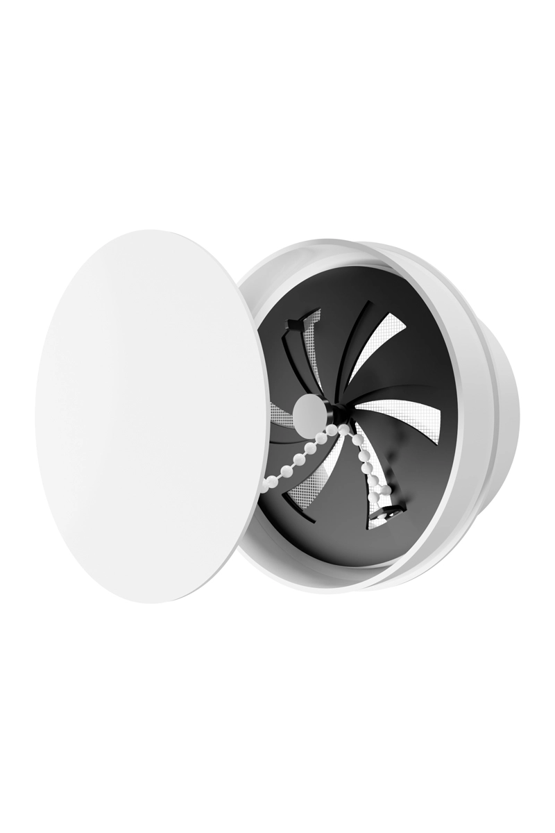 Металлическая заслонка позволяет регулировать объем воздуха, в том числе полностью перекрыть поток. Антимоскитная сетка защищает помещение от проникновения насекомых и грязи из вентиляционного канала.