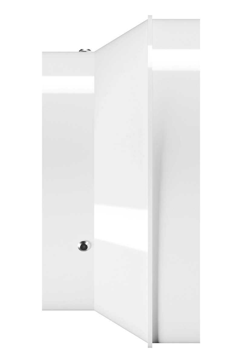 Решетка выполнена из оцинкованной стали толщиной 1,5 мм, что гарантирует прочность конструкции и долгий срок службы. Декоративная часть решетки окрашена белой порошковой краской с текстурой муарового шелка. Благодаря чему декоративная часть решетки гармонично сочетается с белым матовым полотном натяжного потолка, создавая единый стильный образ.