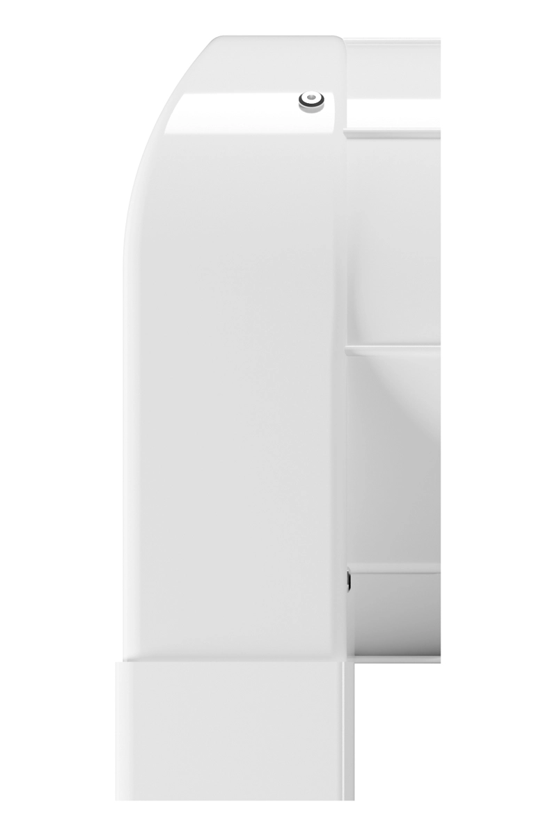 Решетка выполнена из оцинкованной стали толщиной 1,5 мм, что гарантирует прочность конструкции и долгий срок службы. Декоративная часть решетки окрашена белой порошковой краской с текстурой муарового шелка. Благодаря чему декоративная часть решетки гармонично сочетается с белым матовым полотном натяжного потолка, создавая единый стильный образ.