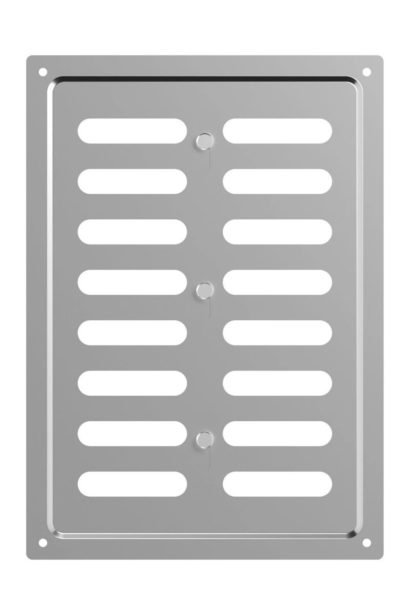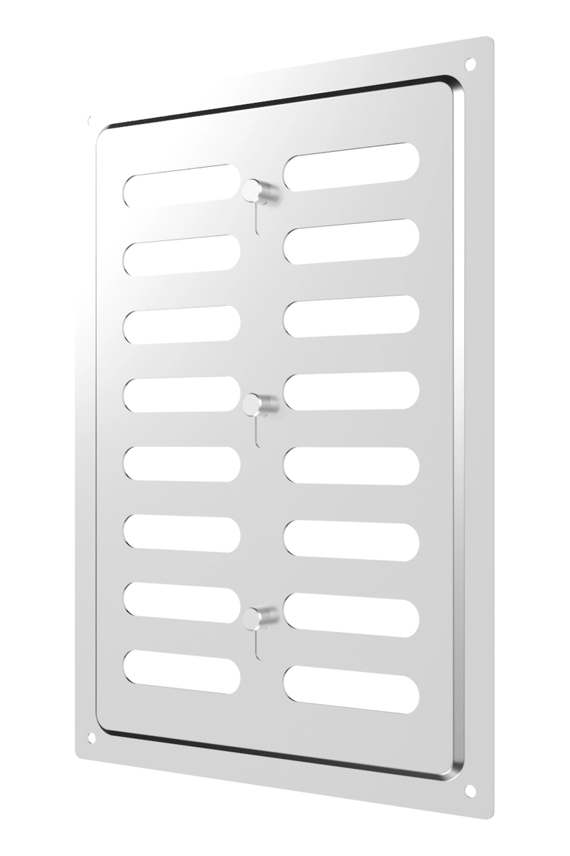 Регулируемая металлическая решетка предназначена для установки в вентиляционный проем, где требуется изменение объема поставляемого воздуха.