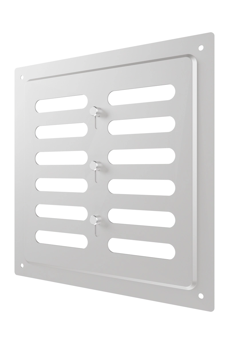 Регулируемая металлическая решетка предназначена для установки в вентиляционный проем, где требуется изменение объема поставляемого воздуха.
