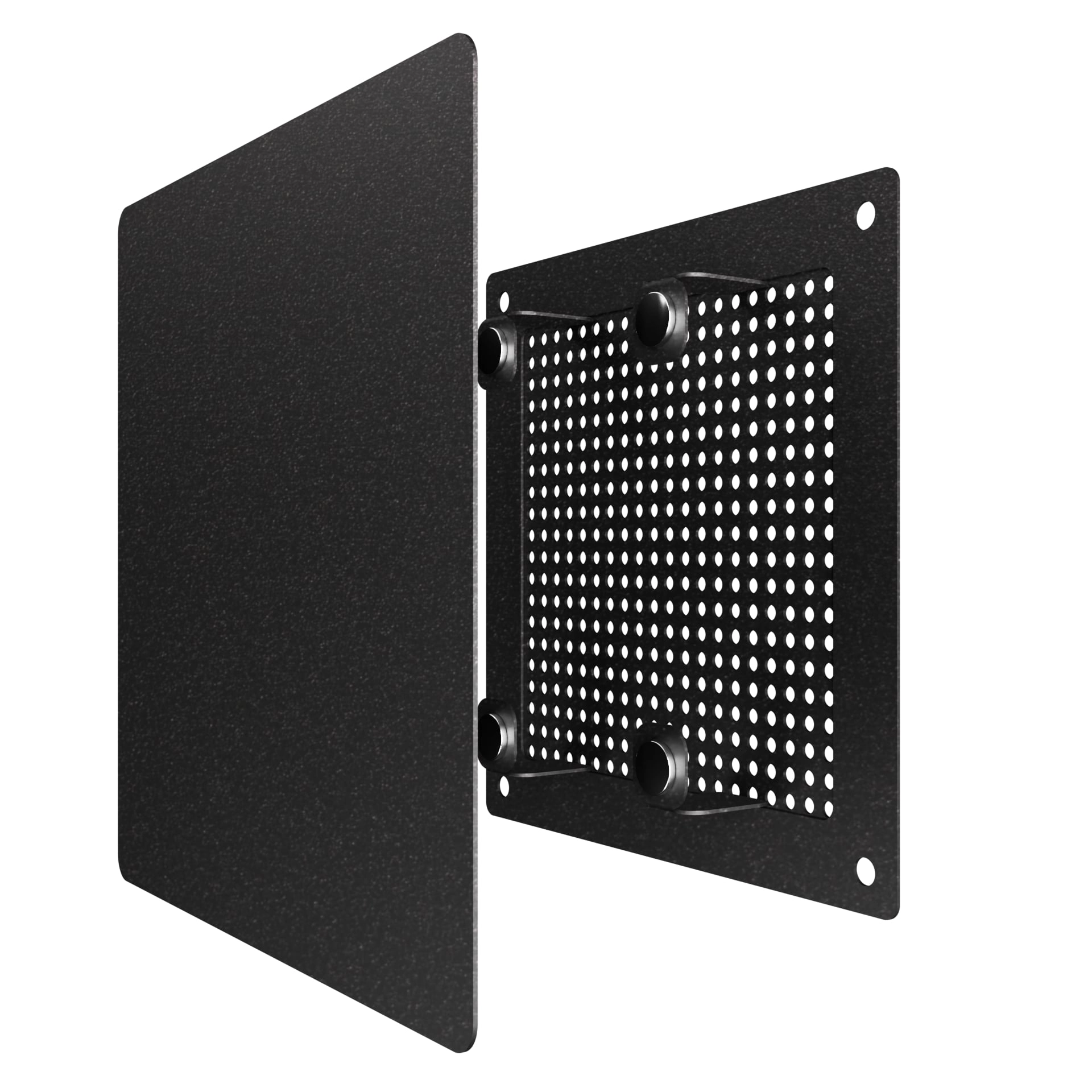 RVM состоит из двух частей. Рамка с сеткой и магнитами крепится к поверхности при помощи саморезов или клея, декоративная панель фиксируется на рамку с помощью магнитов, благодаря чему легко снимается для обслуживания решетки, скрывает вентиляционное отверстие и крепление рамки. За счет такой конструкции доступ воздуха в шахту не перекрывается и происходит его равномерное распределение.