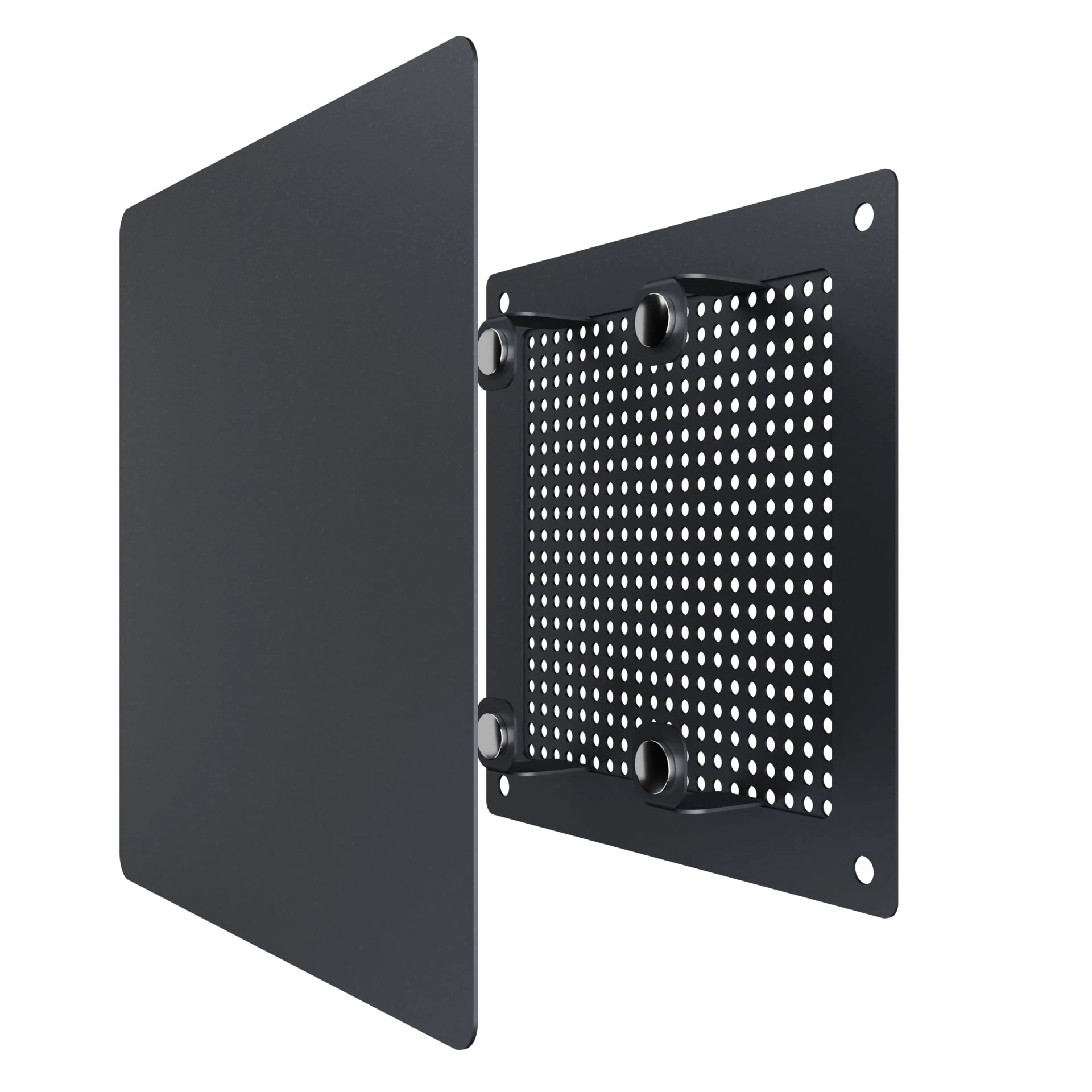 RVM состоит из двух частей. Рамка с сеткой и магнитами крепится к поверхности при помощи саморезов или клея, декоративная панель фиксируется на рамку с помощью магнитов, благодаря чему легко снимается для обслуживания решетки, скрывает вентиляционное отверстие и крепление рамки. За счет такой конструкции доступ воздуха в шахту не перекрывается и происходит его равномерное распределение.