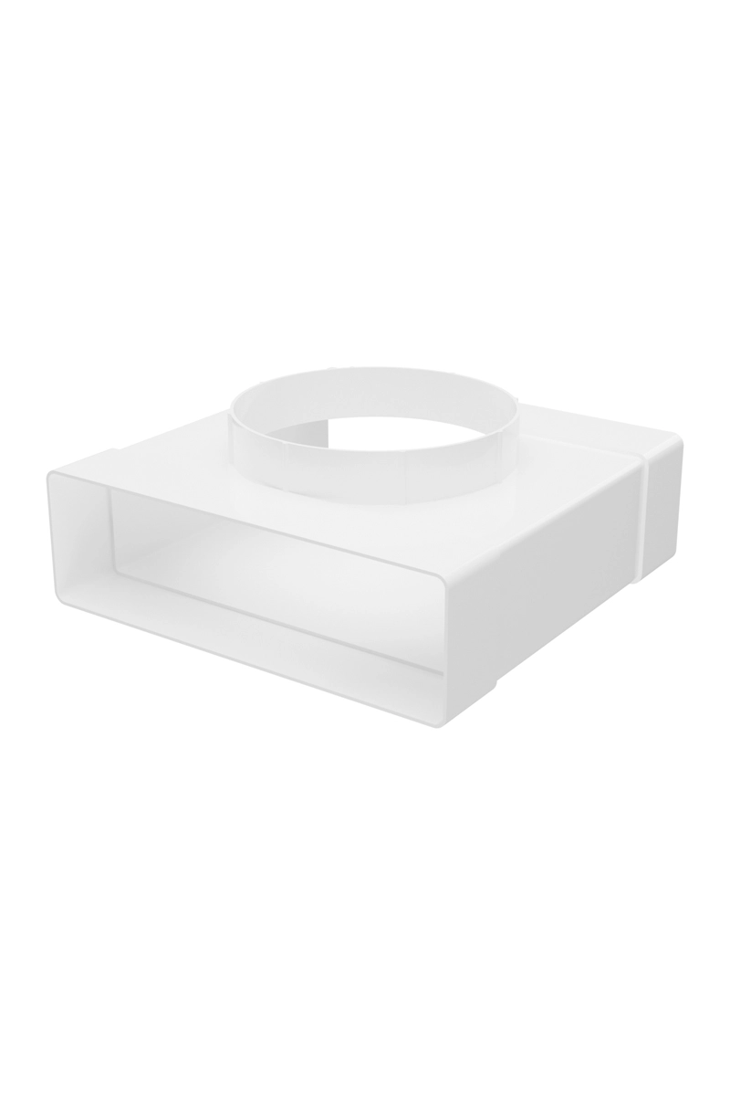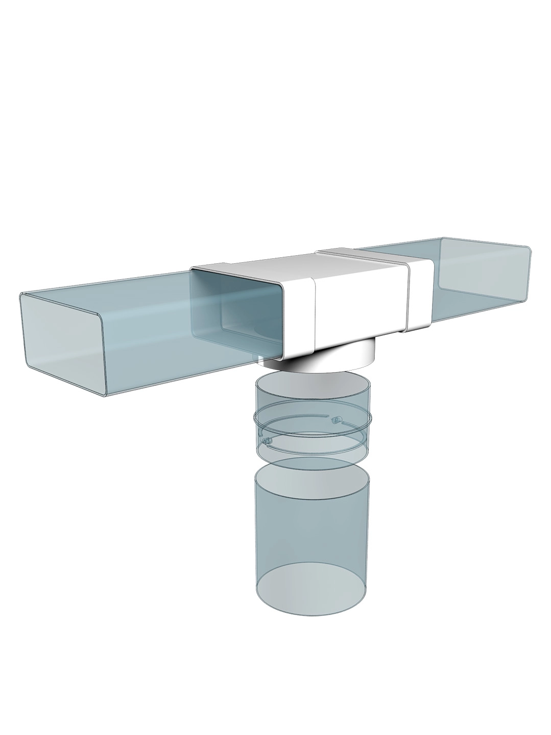 Тройник с выходом на фланец. Для соединения двух плоских воздуховодов и анемостата, диффузора, решетки или вентилятора с фланцем.