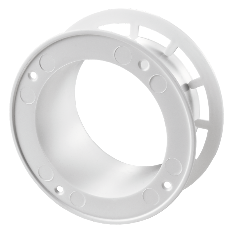 Material: Polystyrol weiß.Für Montage von runden flexiblen Rohren.Wird mit Schrauben an der Wand oder an der Decke befestigt.Mit Verschlussring für Fixierung von flexiblen Rohren.