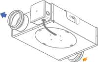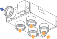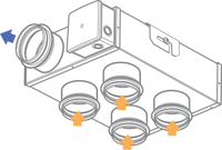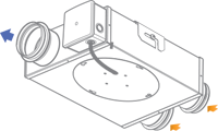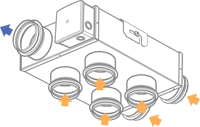 DREHZAHLREGELUNG Die Geschwindigkeit des Ventilators passt sich automatisch dem Luft- widerstand im Luftkanal an. Dies sorgt für einen stabilen Luftstrom.Der Dreistellungsschalter ermöglicht manuelle Motorsteuerung (separate Bestellung).Stufenlose Drehzahlregelung mit einer externen Thyristorsteuerung oder stufenweise Drehzahlregelung mit einem externen Spartrafo (beide auf separate Bestellung erhältlich). MONTAGE Aufgrund ihrer kompakten Ausführung ist der Ventilator ideal für Montage bei Platzmangel z.B. über abgehängten Decken, geeignet.Beliebige Einbaulage.Der Ventilator wird mit Montagewinkeln (Standardlieferung) an der Wand oder an der Decke befestigt.Flexible Luftkanäle mit entsprechenden Durchmessern werden mit Schlauchschellen an den Ventilatorflanschen befestigt. |