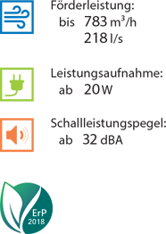 Radial-Rohrventilatoren. Maximale Förderleistung bis 783 m³/h.